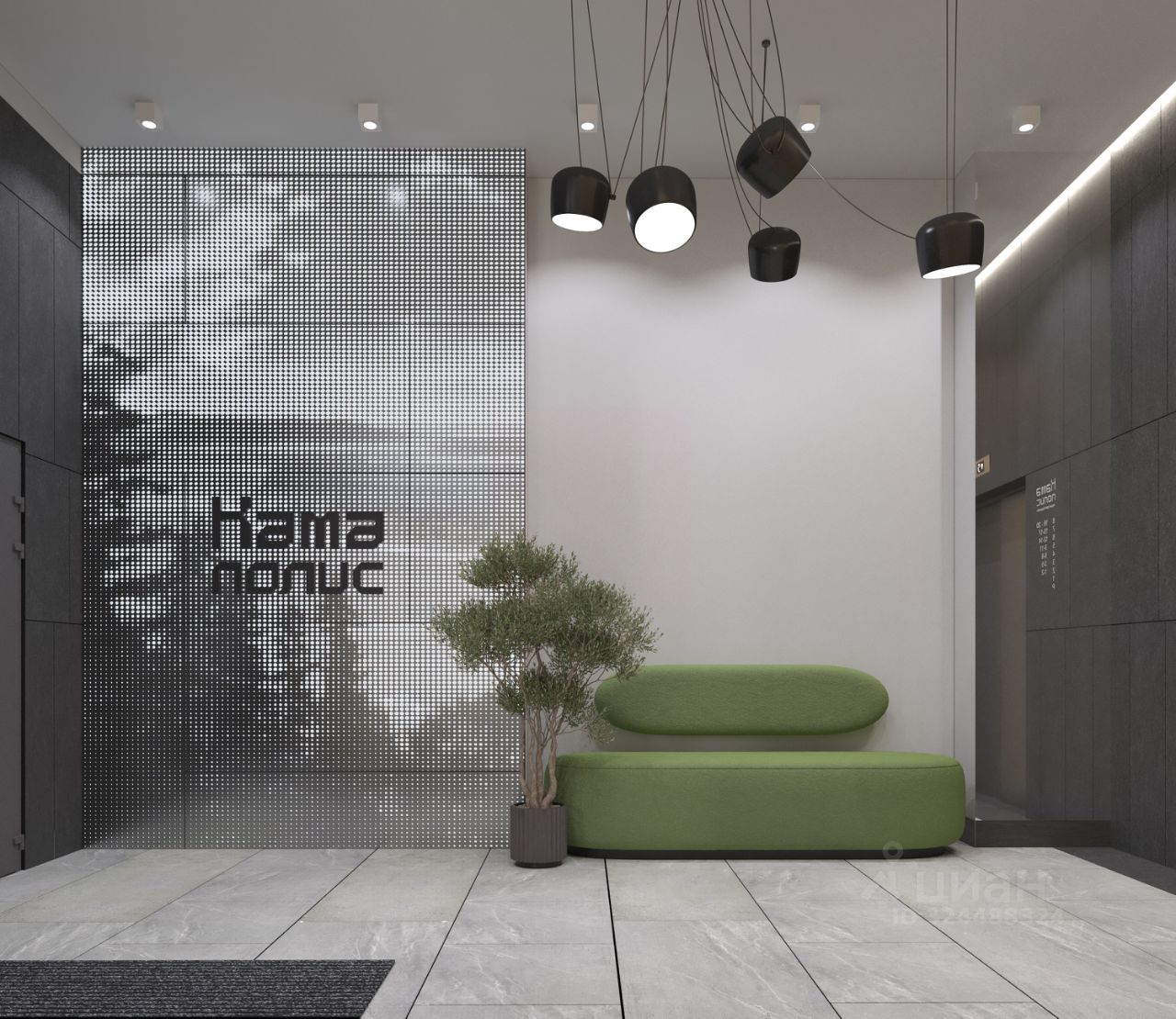 Концептуальные лобби Концепция проекта продолжается интерьером лобби. Здесь преобладают естественные оттенки и текстуры, а мебель выполнена из экологичных материалов. Для удобства жителей созданы собственные колясочные и велосипедные, а для заботы о домашних любимцах предусмотрена лапомойка.