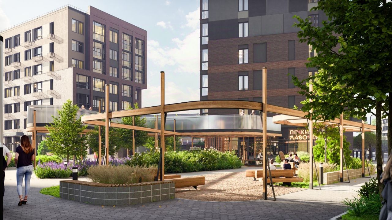 Квартал будет располагать богатой инфраструктурой: на первых этажах домов разместятся магазины, пекарни, кофейни, пункты выдачи, аптеки, детские центры, цветочные салоны и многое другое, что сделает жизнь поистине комфортной.