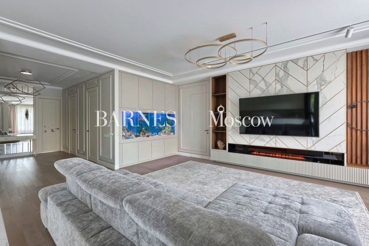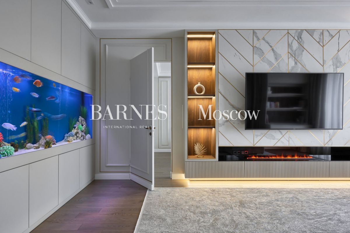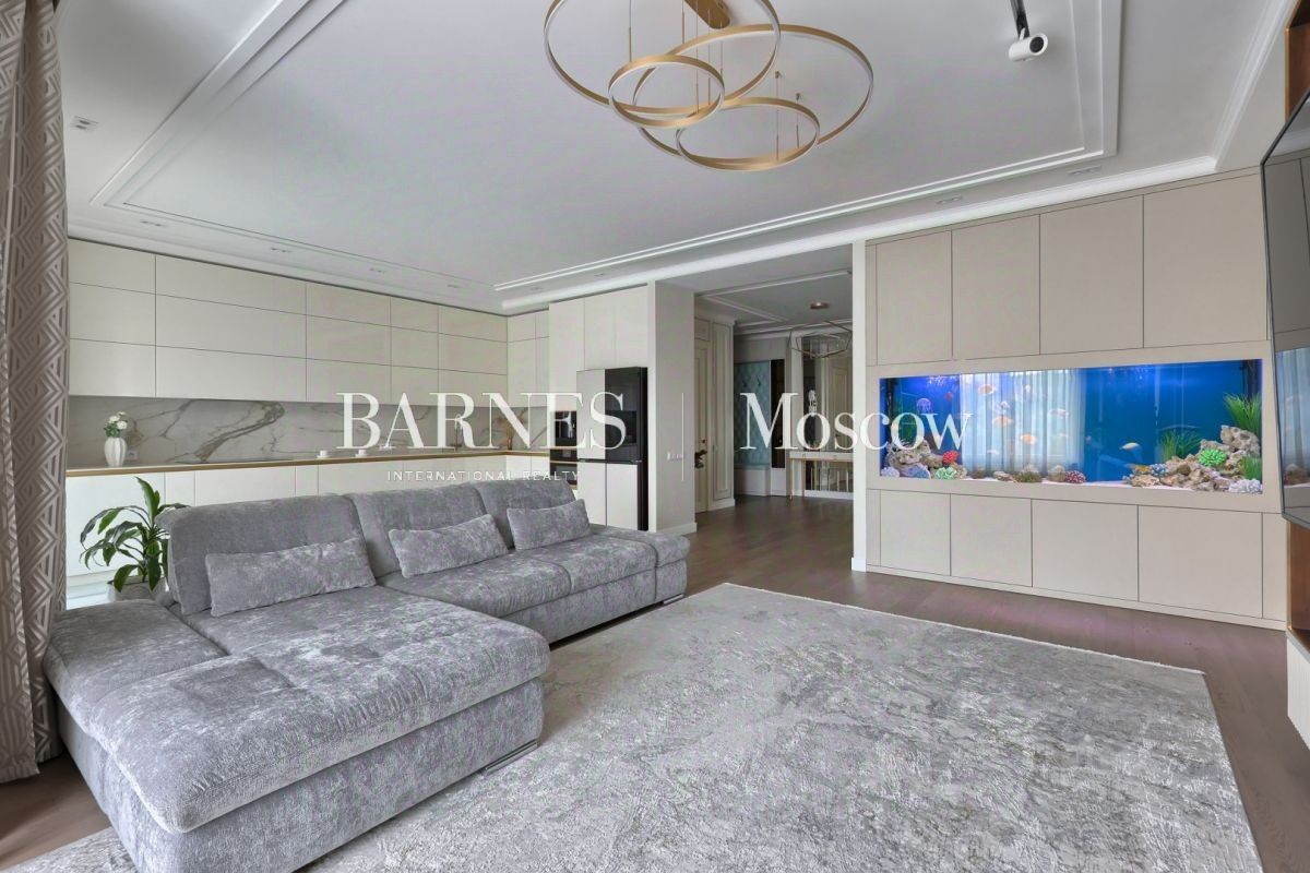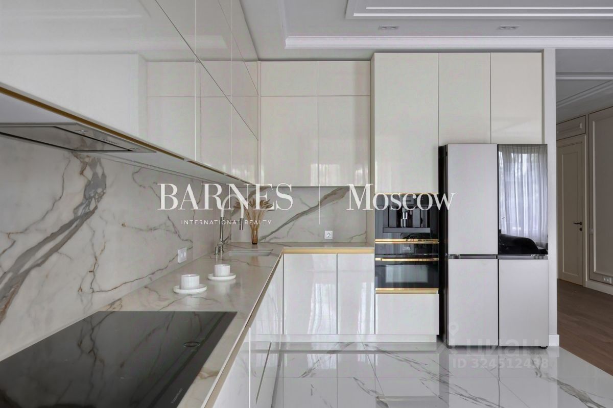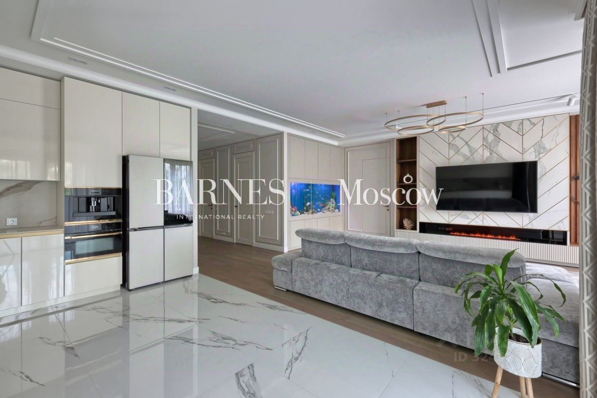 В квартире произведён дизайнерский ремонт по эксклюзивному проекту с использованием дорогостоящих материалов. Мебель изготовлена на заказ, фасады на кухне открытие-закрытие с прикосновения, техника премиального уровня Kuppersbusch.