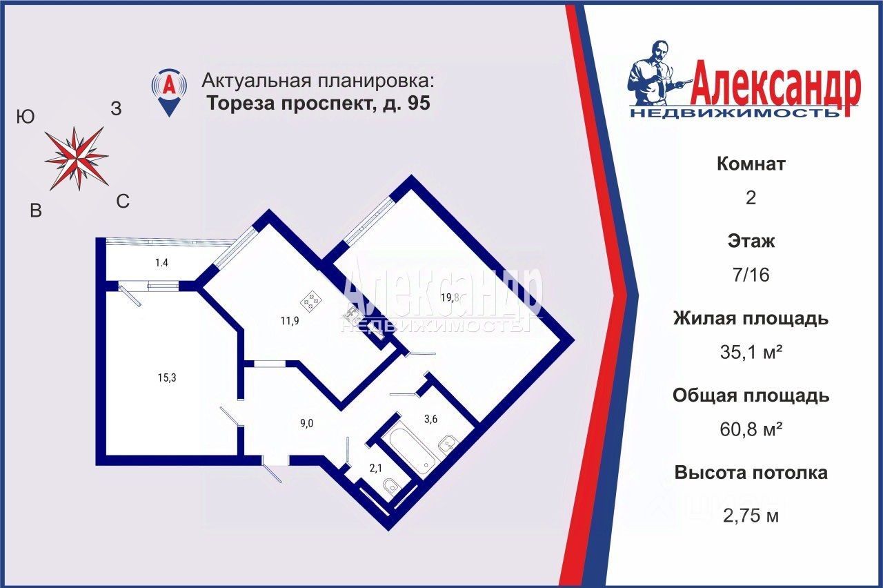 продам 2-к, Тореза проспект, 9517 099 000 ₽