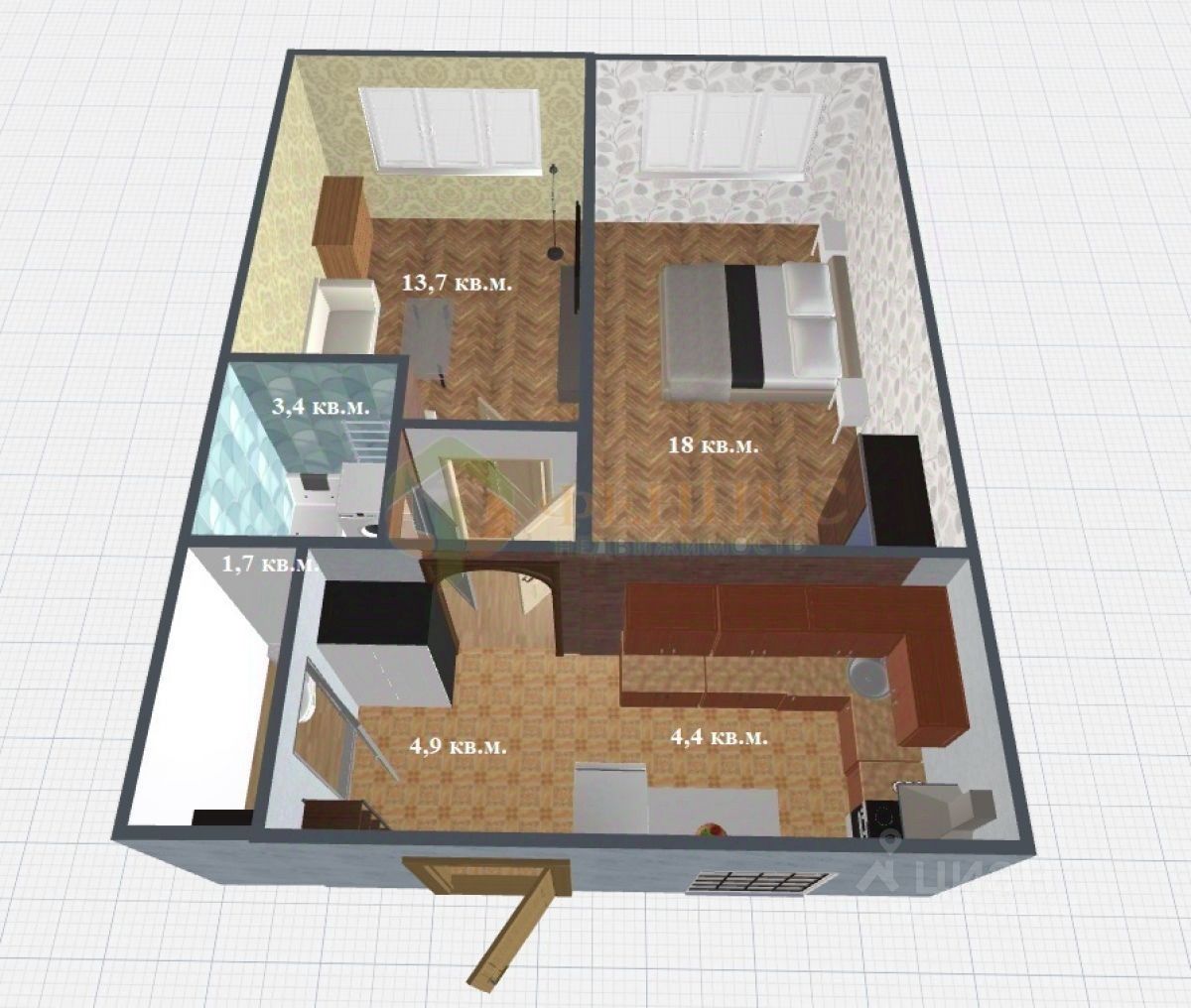 — просторная комната площадью 18 квадратных метров, которая станет идеальным местом для отдыха и релаксации, — комната площадью 13,7 квадратных метров, которая отлично подойдёт для работы или приёма гостей.