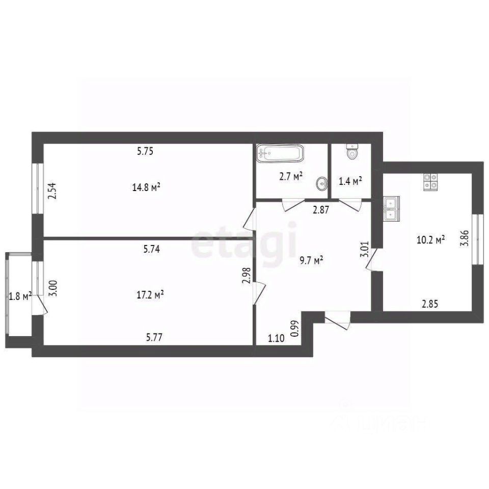- Комнаты: две просторные комнаты, полностью обустроенные спальными зонами и местами для хранения вещей. В одной из комнат предусмотрен выход на балкон.