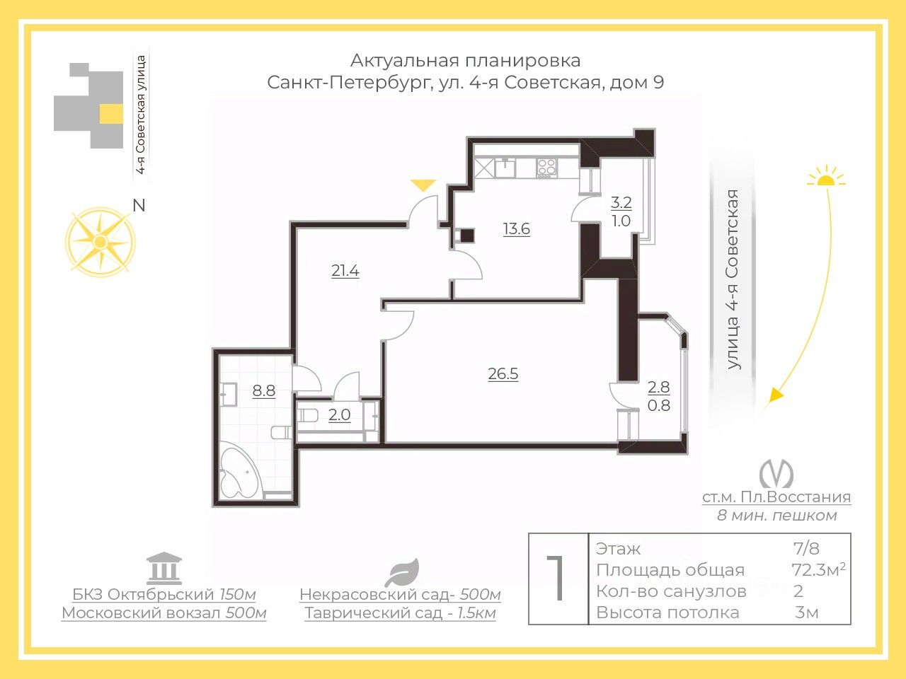 продам 1-к, 4-я Советская, 935 900 000 ₽