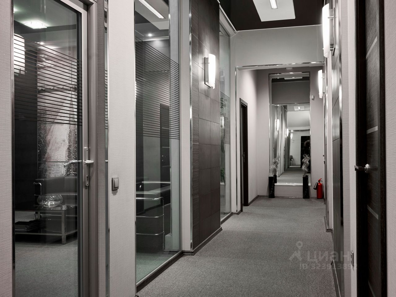 Офисный комплекс имеет функциональную планировку и состоит из просторной зоны ресепшен, отдельной переговорной комнаты, множества изолированных кабинетов, как для управляющего, так и для обслуживающего персонала, комфортной уборной комнаты, кухонной зоны, гардеробной и нескольких вспомогательных помещений. Рассчитан для комфортной работы 15+ сотрудников, не считая отдельные кабинеты директора и его заместителя, а также переговорной комнаты со всем оборудованием для проведения видео-конференций.