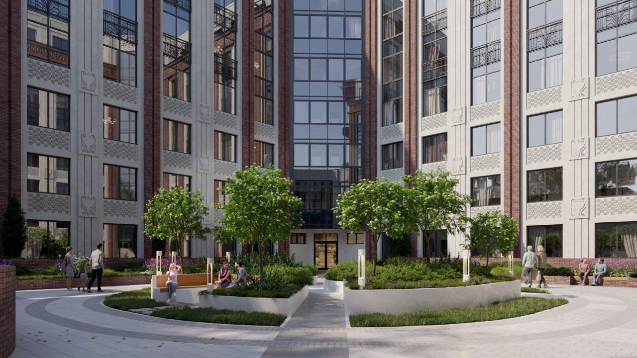 • Двор без машин на стилобате,