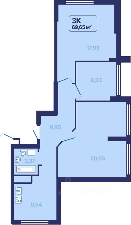 Общая площадь69,65 м2