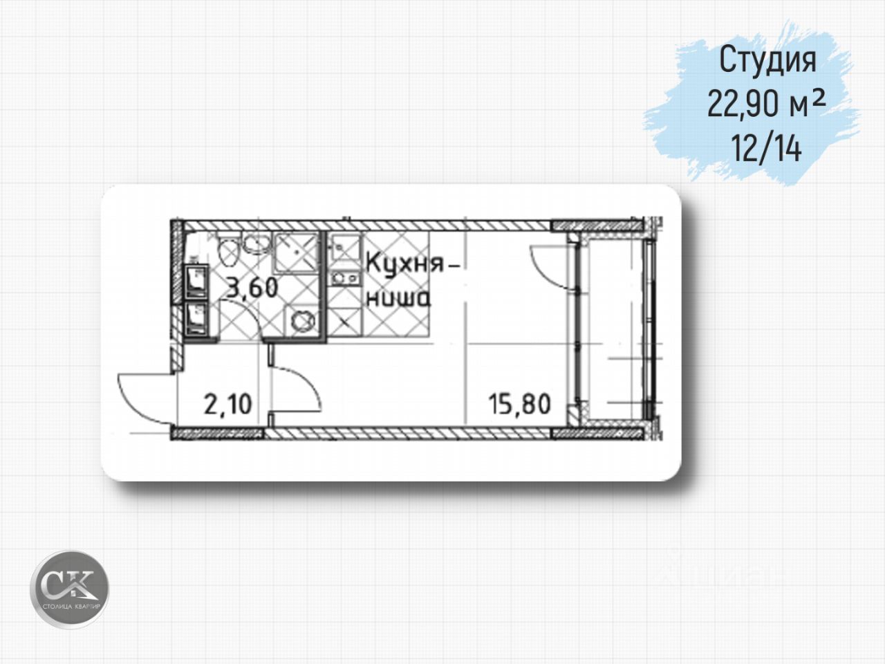 Характеристики квартиры: •Общая площадь: 21.6 м² •Жилая: 15.8 м² •Кухня: 2.0 м² •Санузел раздельный •Этажность: 12 из 14 •Год постройки дома 2024
