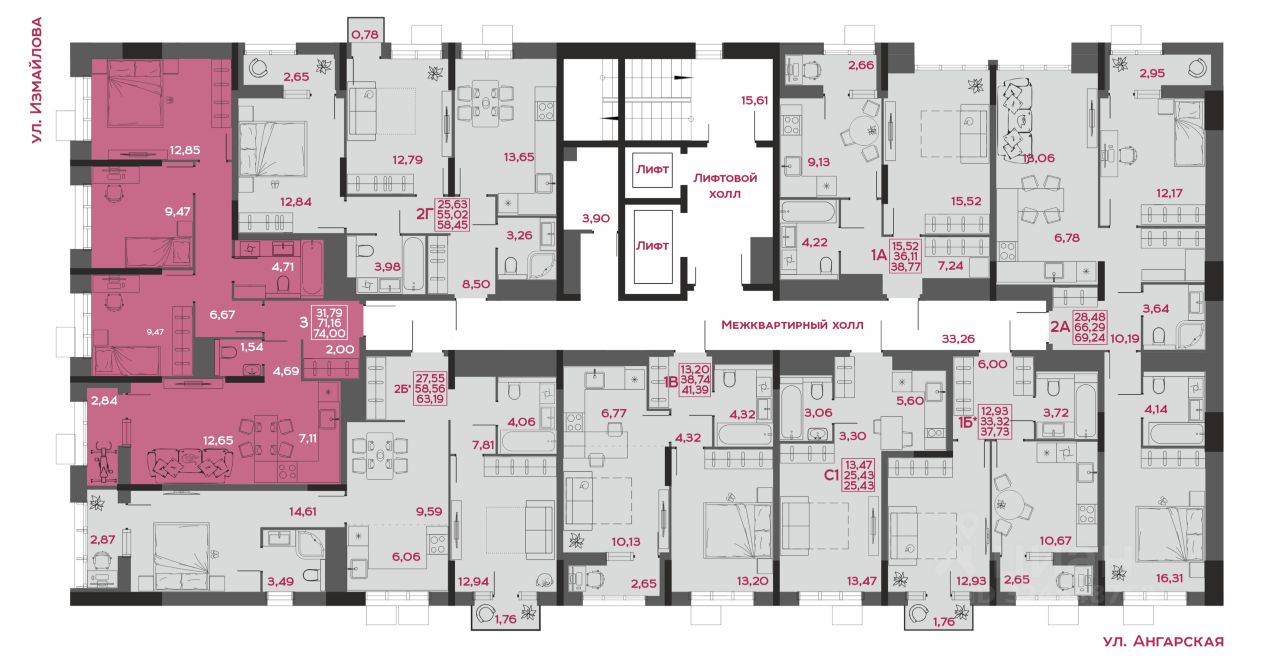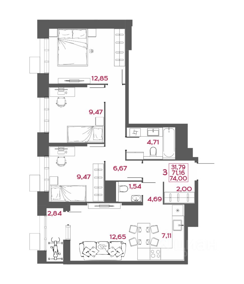Общая площадь74 м2