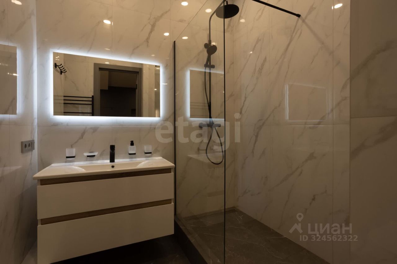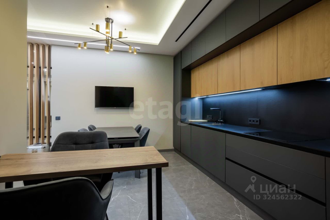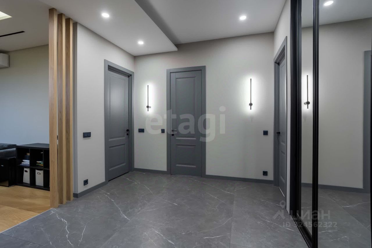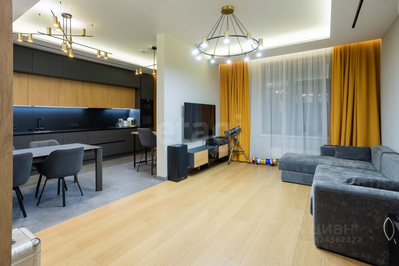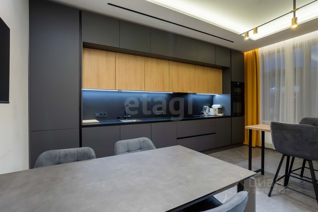 Что делает эту квартиру особенной? Индивидуальный дизайн-проект в современном стиле: — Огромный зеркальный шкаф-гардероб в коридоре, визуально расширяющий пространство — Высокие двери и деревянные рейки на входе в гостиную — подчеркивают высоту потолков и добавляют уюта — Скрытые шторы с диодной подсветкой и LED-освещение по всей квартире — для атмосферного света в любое время суток