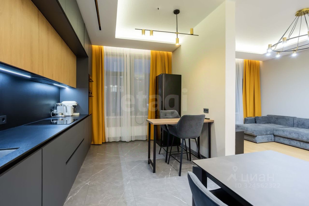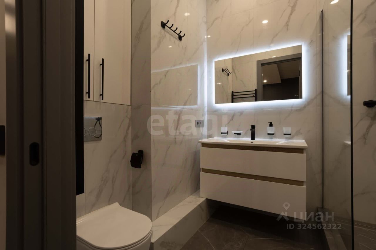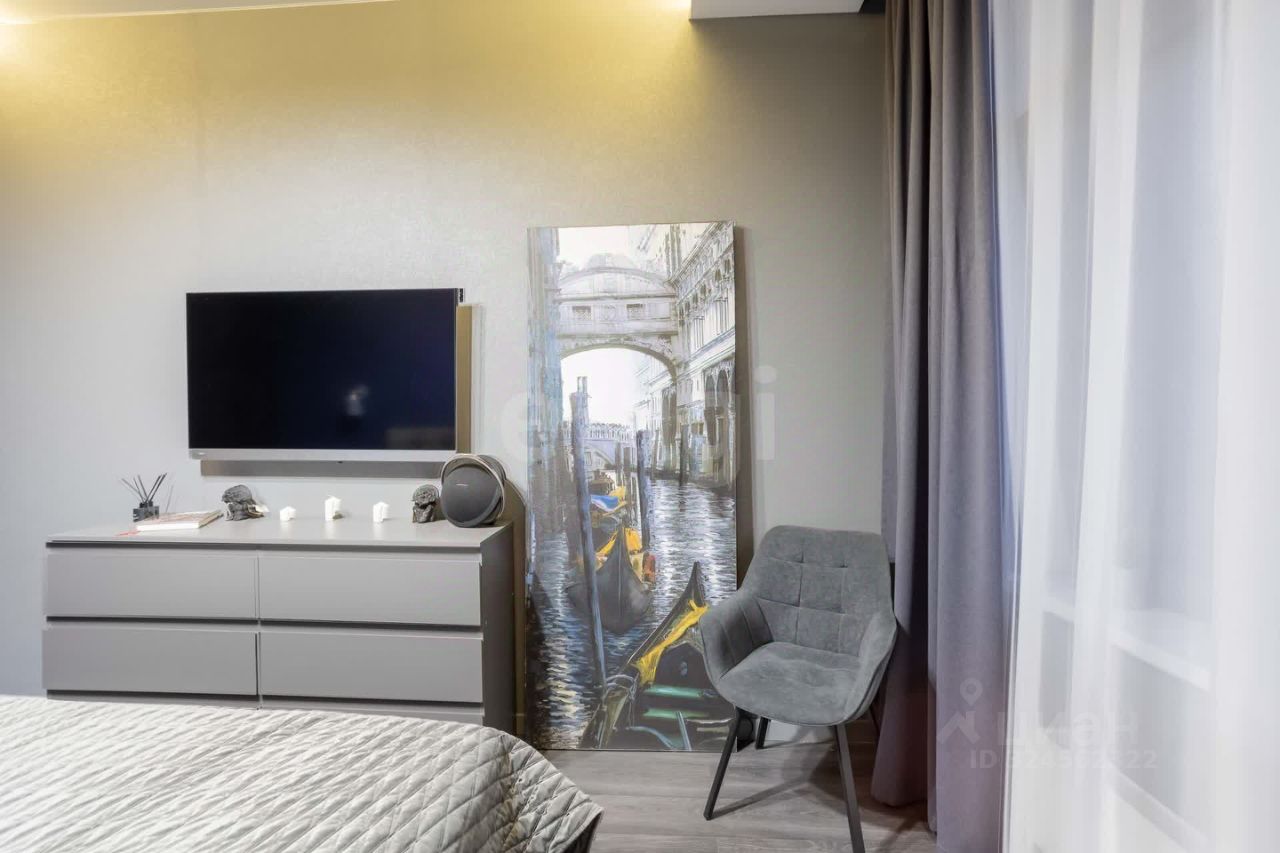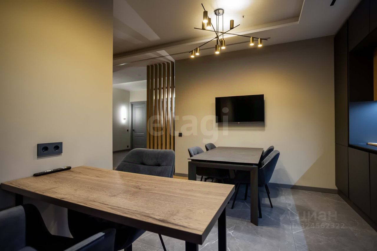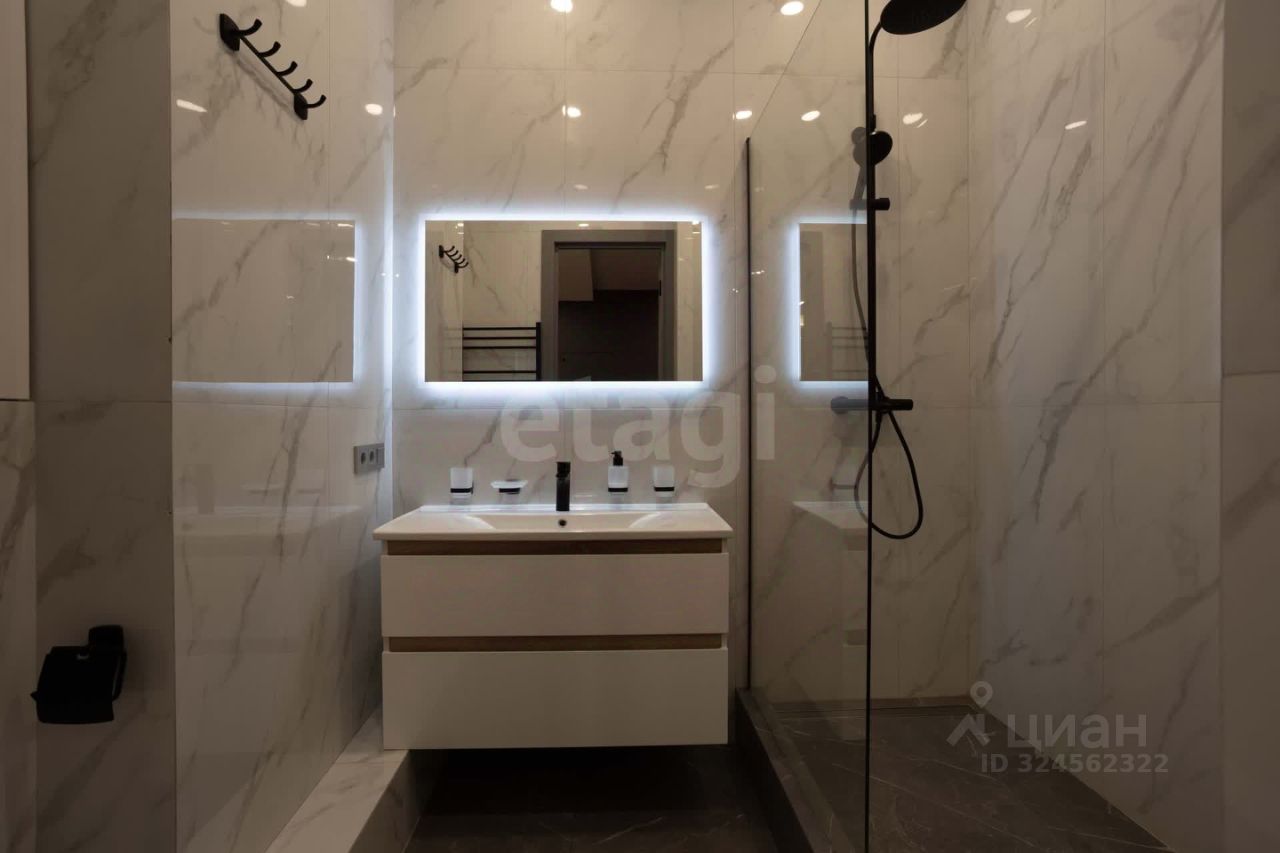 Что делает эту квартиру особенной? Индивидуальный дизайн-проект в современном стиле: — Огромный зеркальный шкаф-гардероб в коридоре, визуально расширяющий пространство — Высокие двери и деревянные рейки на входе в гостиную — подчеркивают высоту потолков и добавляют уюта — Скрытые шторы с диодной подсветкой и LED-освещение по всей квартире — для атмосферного света в любое время суток