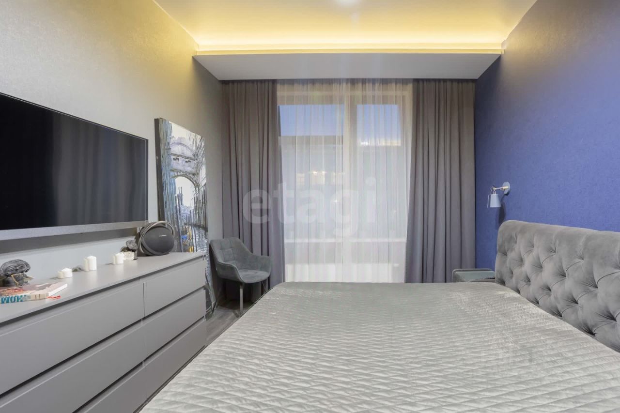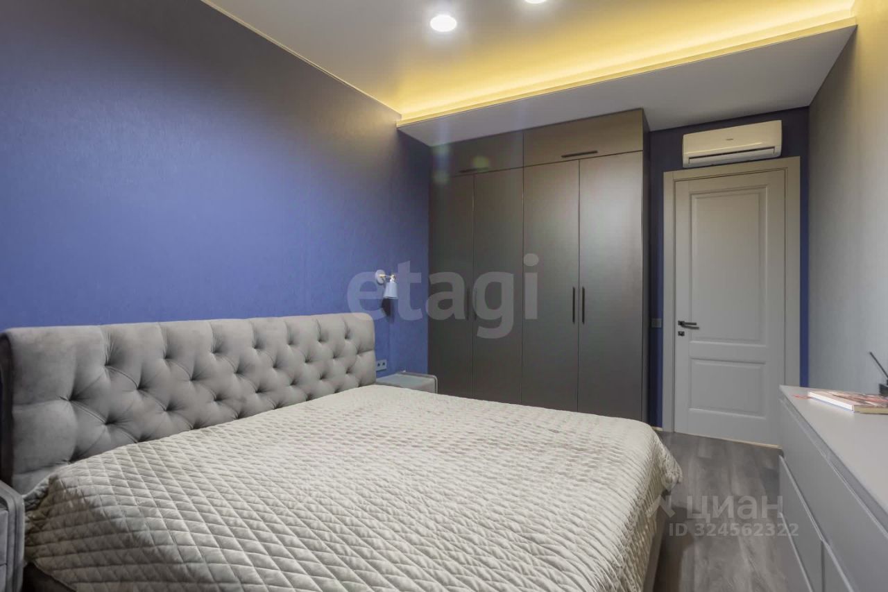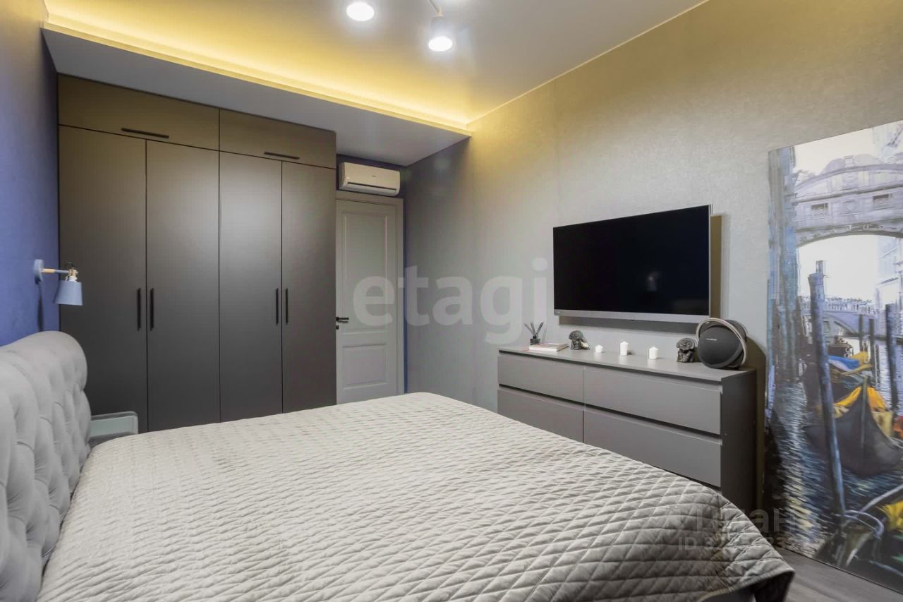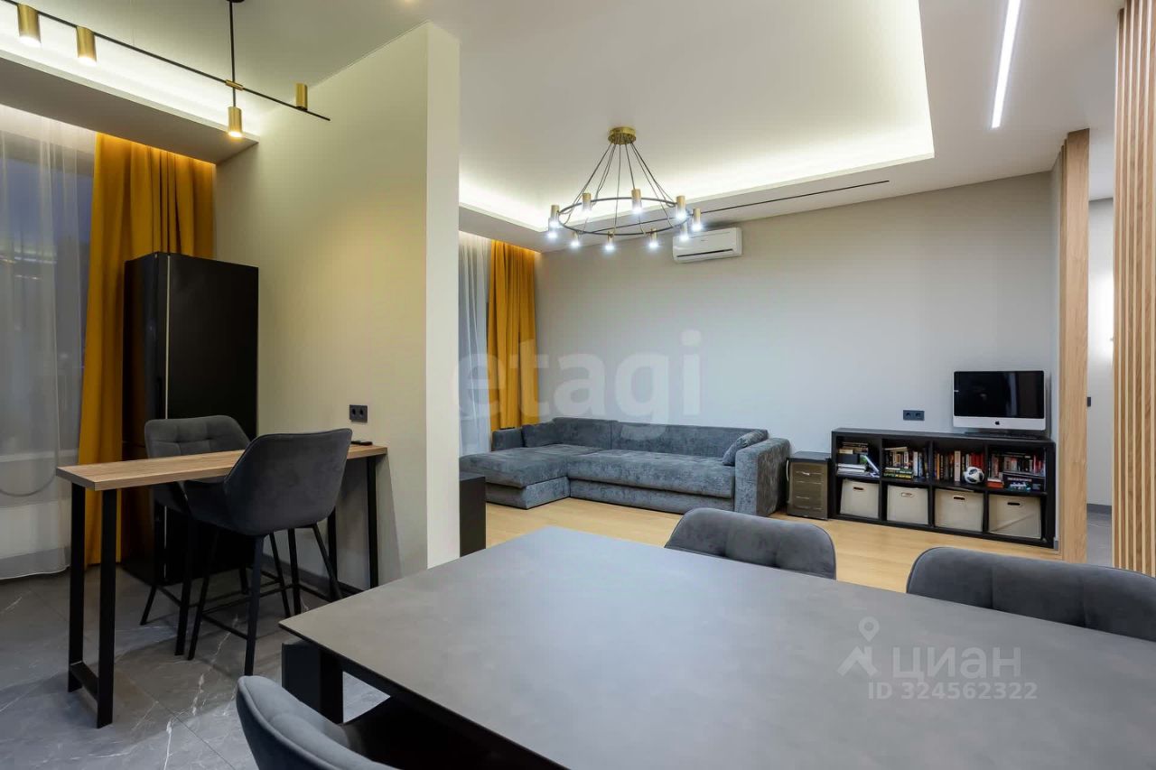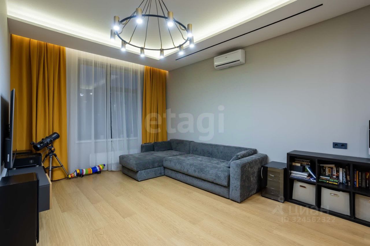 Что делает эту квартиру особенной? Индивидуальный дизайн-проект в современном стиле: — Огромный зеркальный шкаф-гардероб в коридоре, визуально расширяющий пространство — Высокие двери и деревянные рейки на входе в гостиную — подчеркивают высоту потолков и добавляют уюта — Скрытые шторы с диодной подсветкой и LED-освещение по всей квартире — для атмосферного света в любое время суток