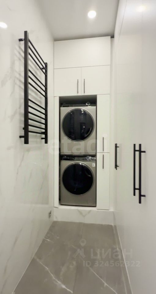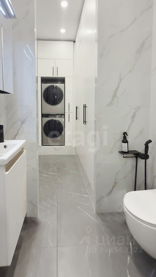 Санузел и прачечная — уровень премиум: — Большая раковина, зеркало с подсветкой, современная душевая кабина (сантехника AM PM) — Отдельная прачечная с зоной хранения, стиральной и сушильной машинами Haier, а также гигиеническим душем