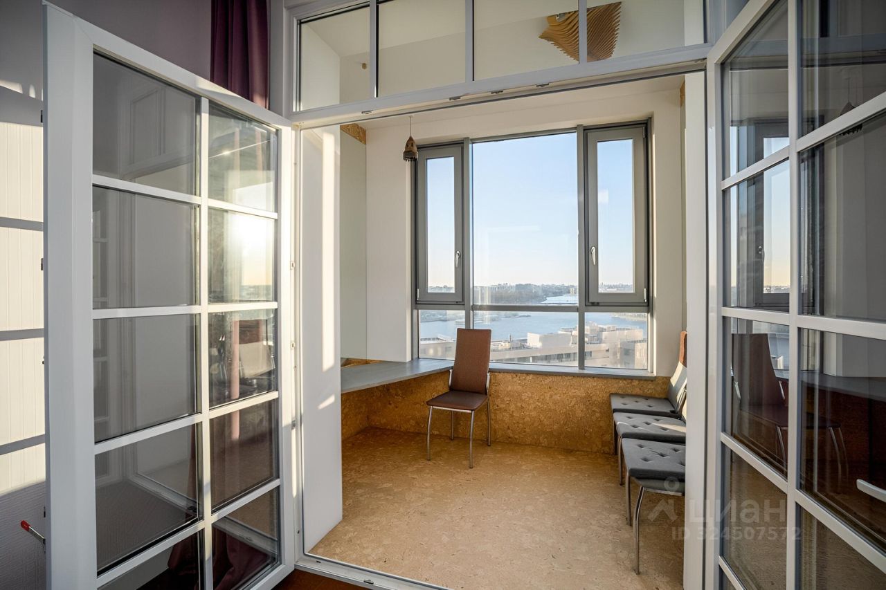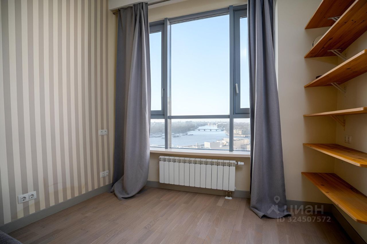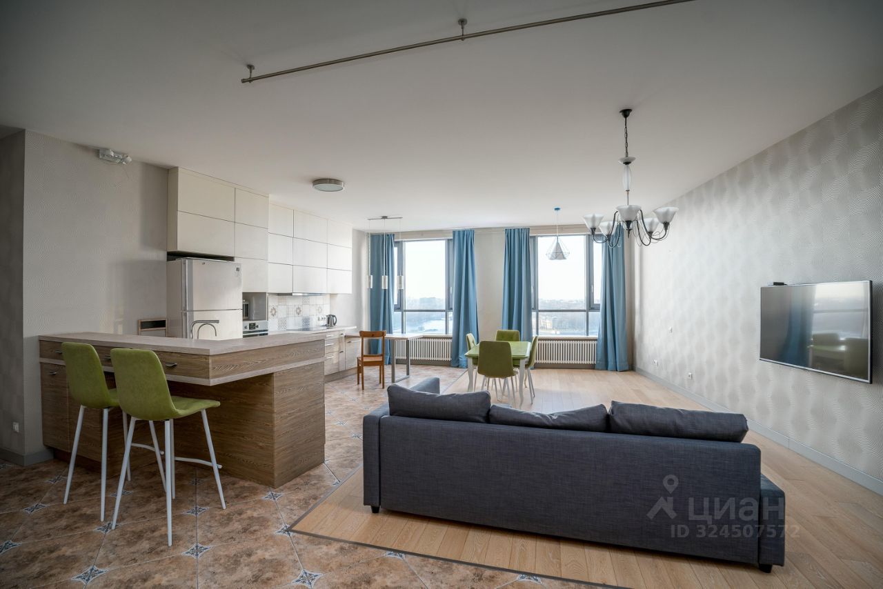 Основные характеристики:общая площадь: 120 м²,2 изолированные комнатыпросторная кухнягостиная,лоджия,Вся необходимая бытовая техника. Достаточно мест для хранения вещей,большие окна — отличная освещённость и панорамные виды на Неву,высокие потолки и просторные помещения.
