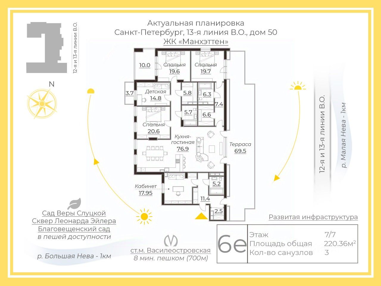 Арт. 106650142 Ваш эксклюзивный оазис на Васильевском острове: уникальный пентхаус в клубном доме ''Манхэттен''
