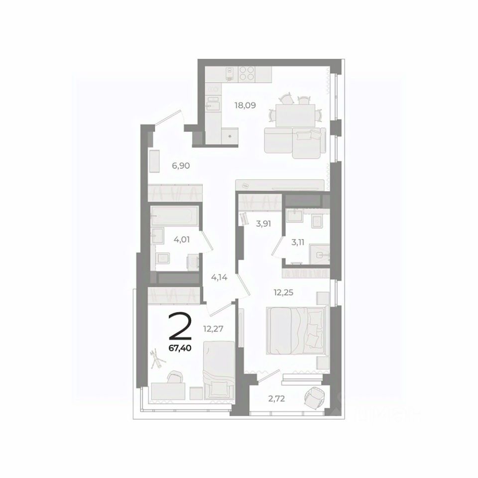 Общая площадь67,4 м2