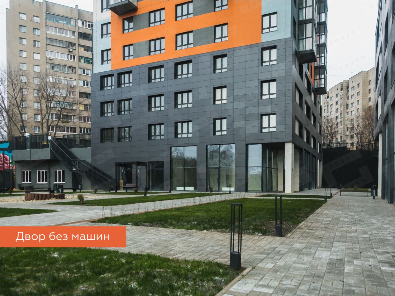 2. Вход в подъезды без ступеней на уровне земли удобно для колясок и велосипедов!