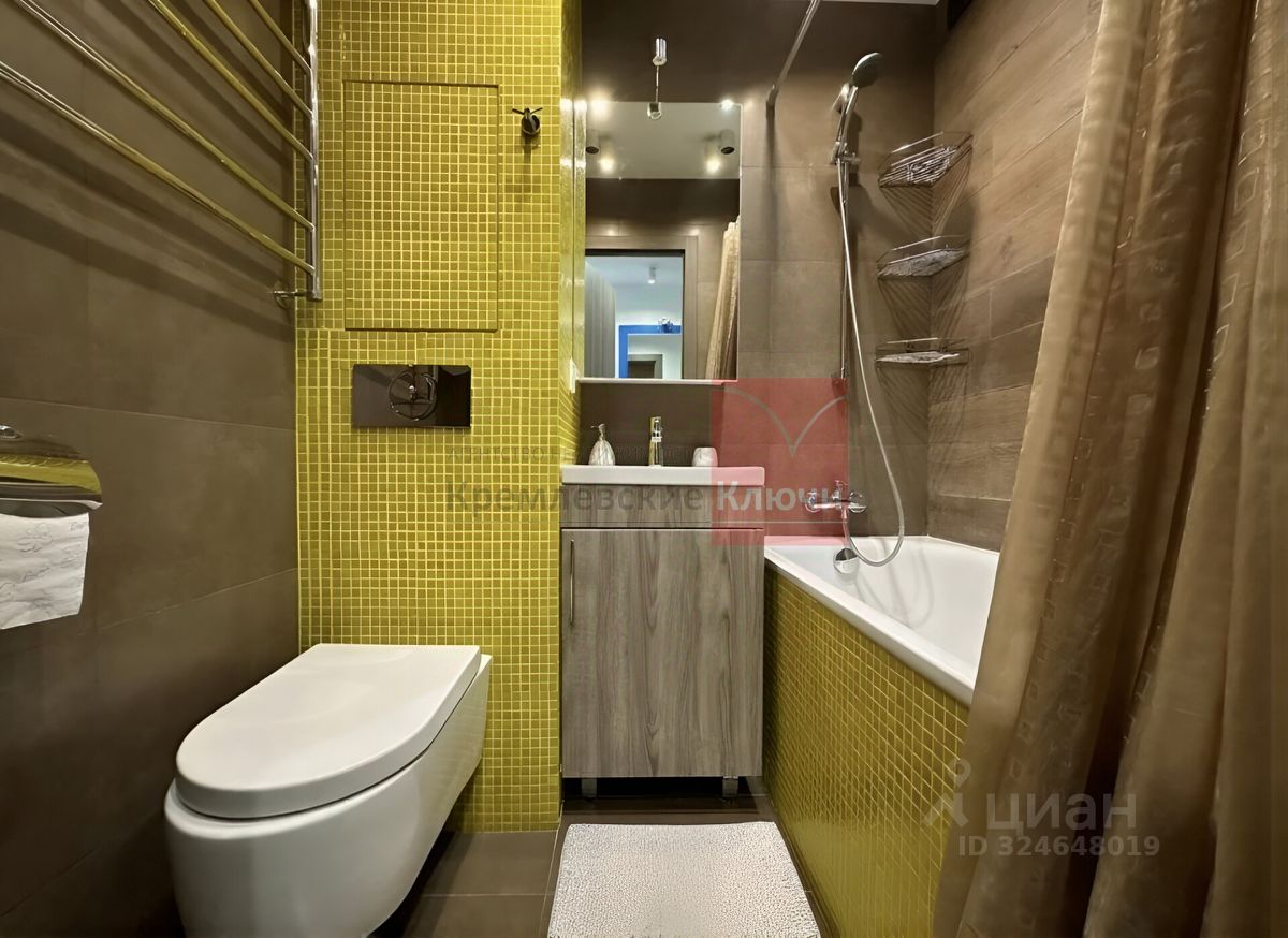 Уютная однокомнатная квартира с дизайнерским ремонтом. Выполнено зонирование с помощью реечной перегородки на спальную и гостиную зоны, вместительные шкафы с функциональной системой хранения, продуманная кухня со всей необходимой техникой быстро и легко отгораживается сдвижной стеклянной перегородкой, санузел совмещенный.