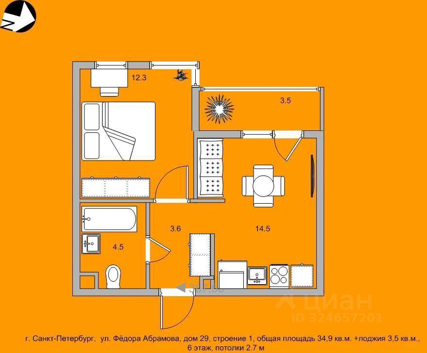 продам 1-к, Федора Абрамова, 298 999 000 ₽