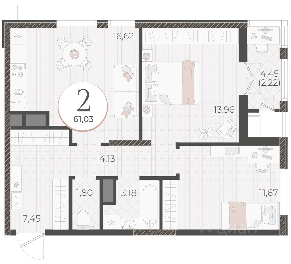 Общая площадь61,03 м2