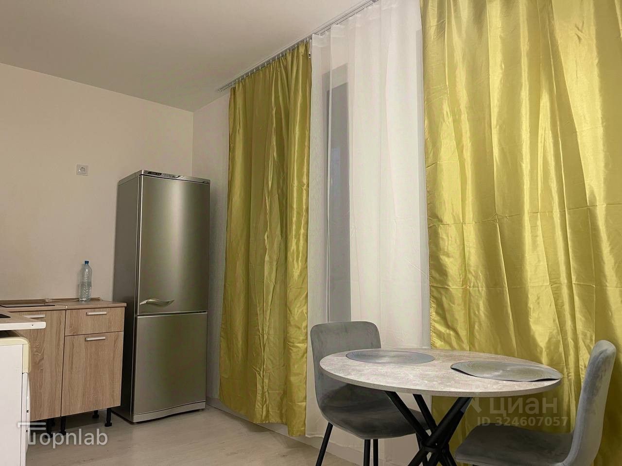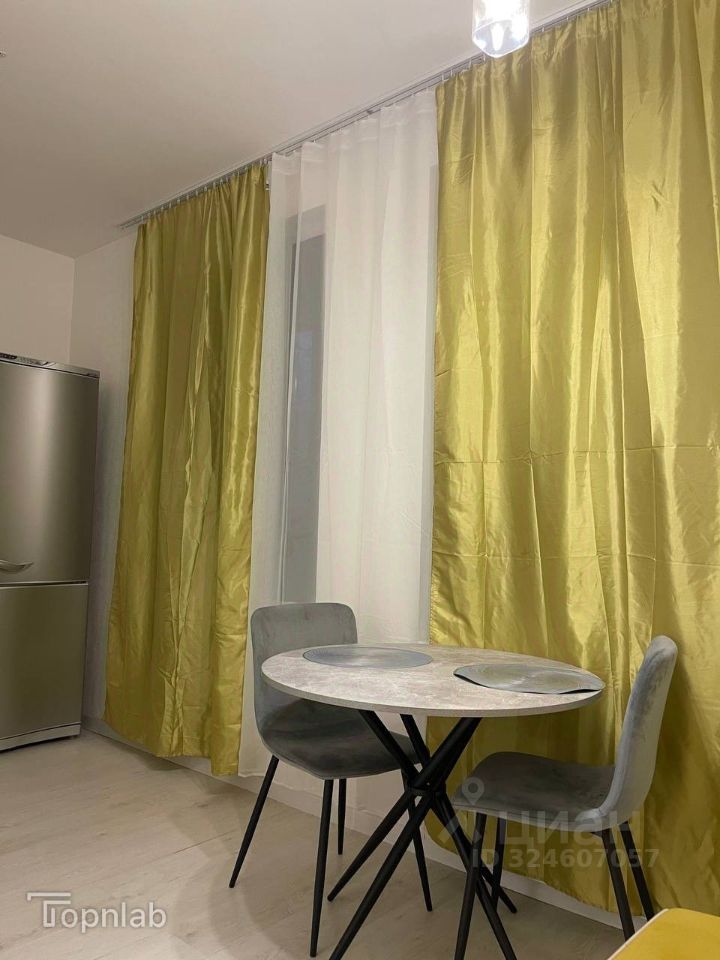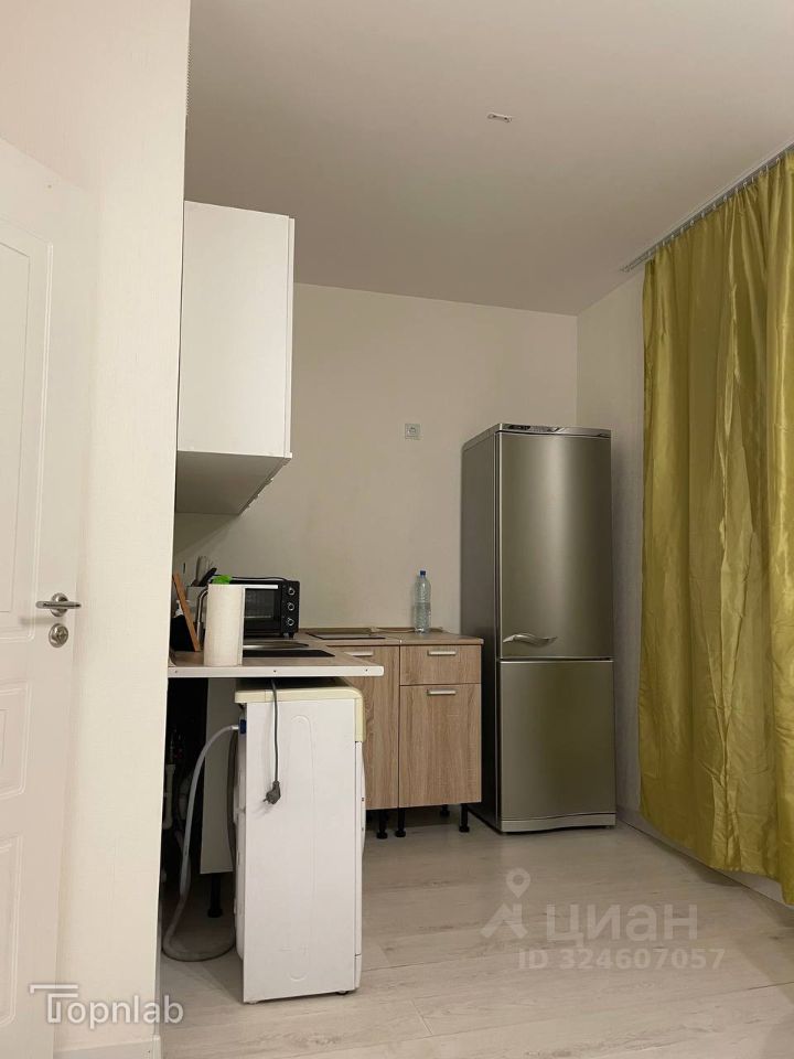 В квартире есть вся необходимая мебель: кухня, системы хранения одежды, спальные места, а также техника — холодильник и стиральная машина. Санузел совмещенный.