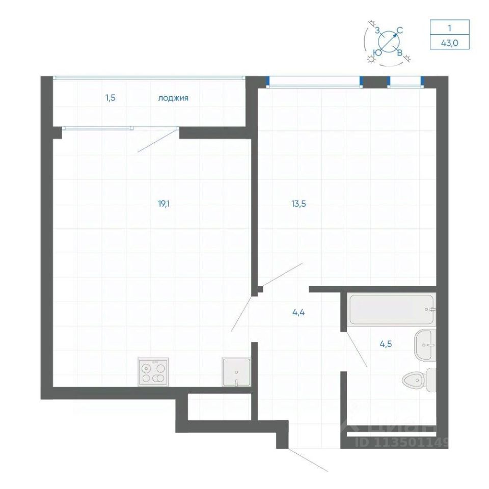 Общая площадь43 м2