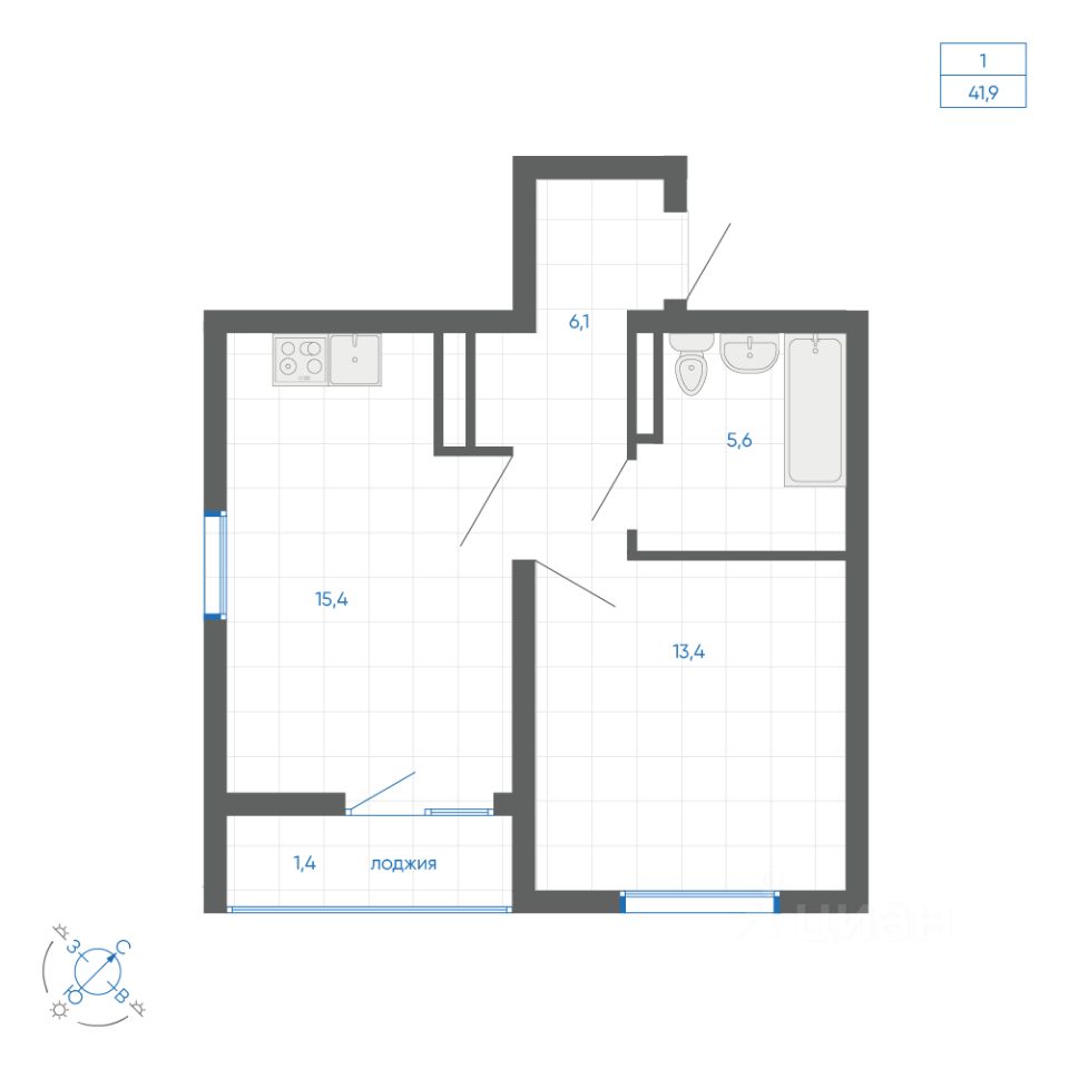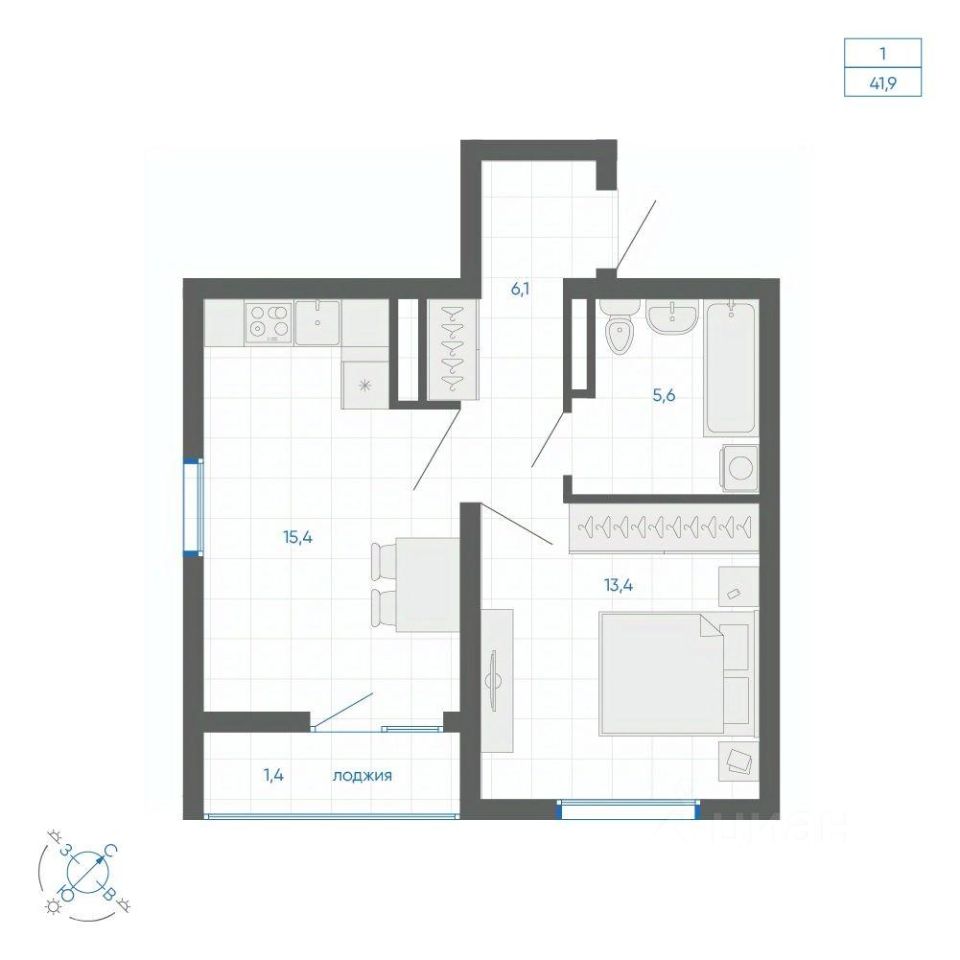 Общая площадь41,9 м2