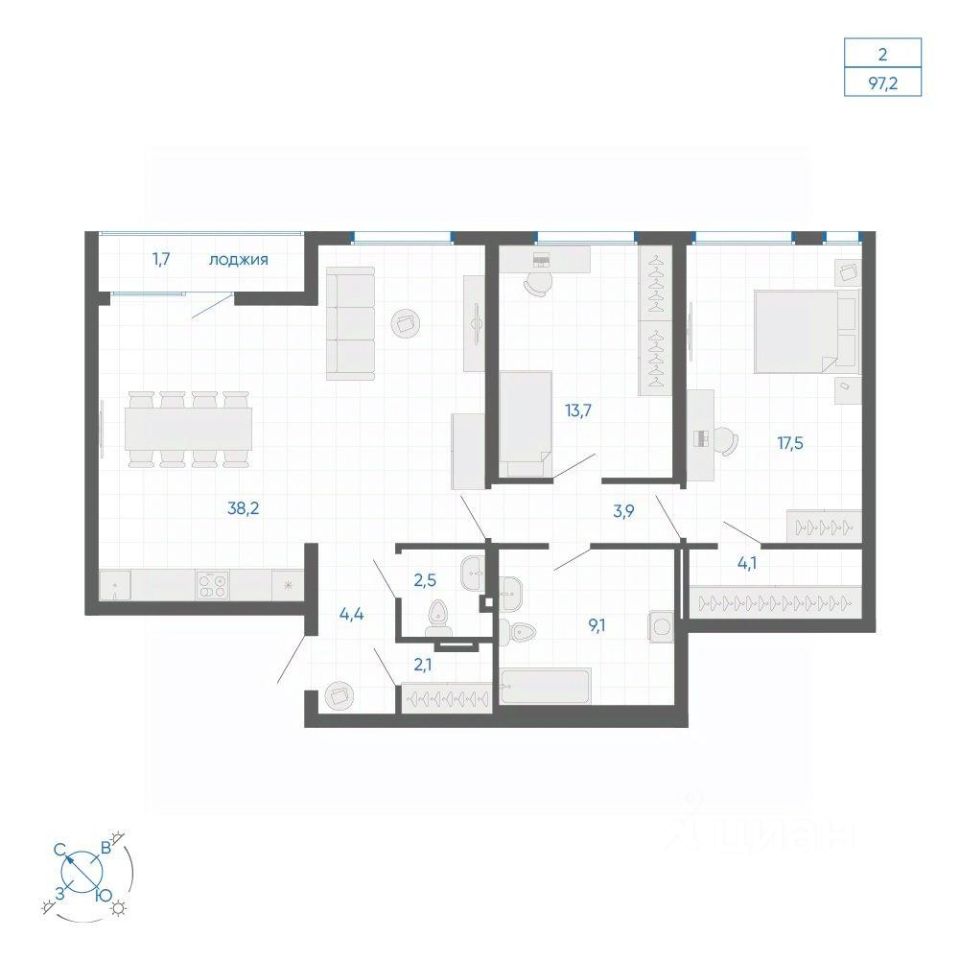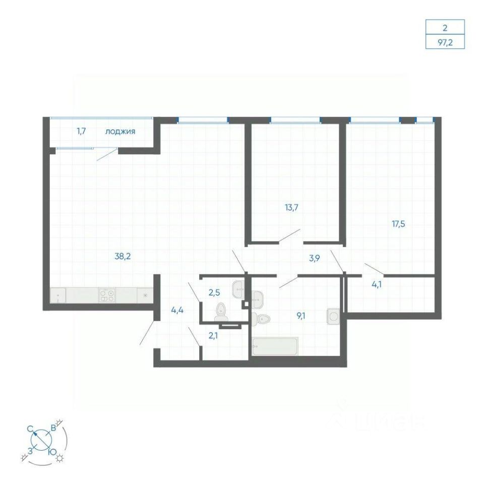 Общая площадь97,2 м2