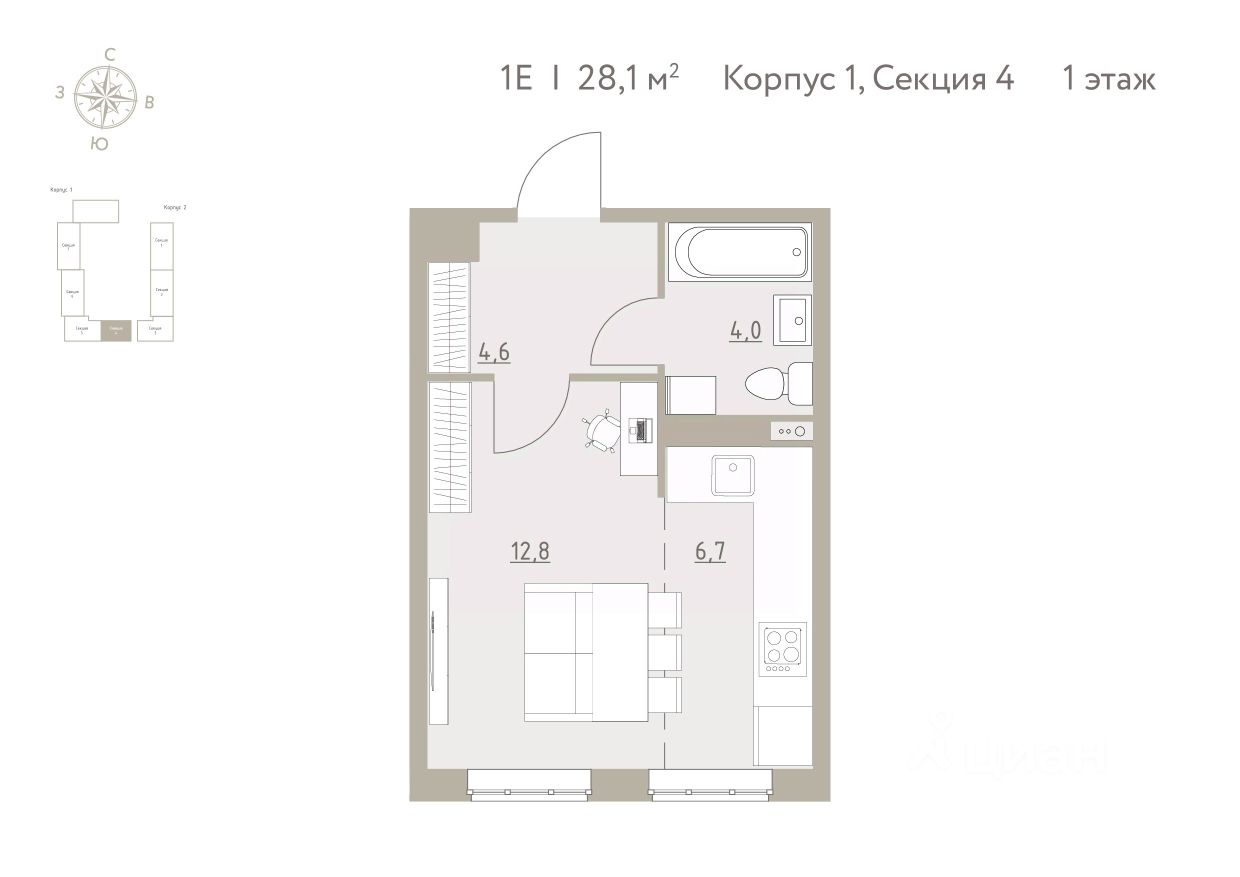 Общая площадь28,1 м2