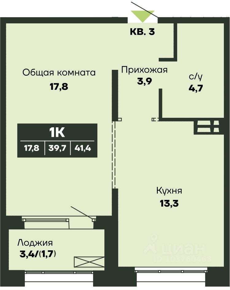 Общая площадь41,4 м2