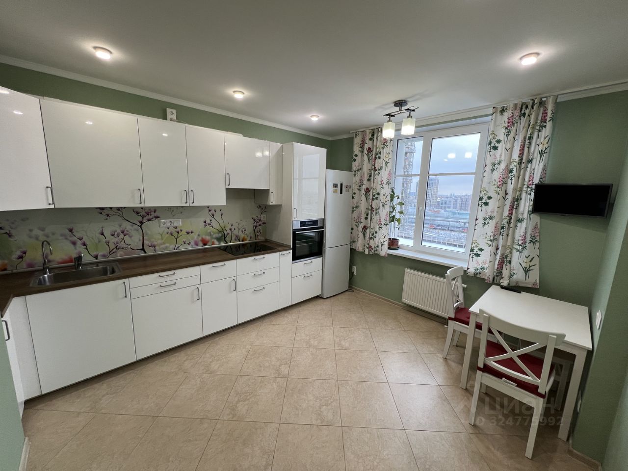 Установлена кухня IКЕА с вместительными шкафами, сенсорной варочной поверхностью и широким духовым шкафом Еlесtrоluх. СВЧ и небольшую посудомоечную машину собственник может приобрести при необходимости.
