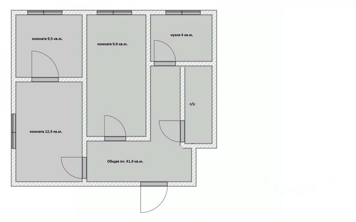 Общая площадь квартиры-41,9, жилая-31,5(12,4-9,6-9,5), кухня-4,коридор-4,8