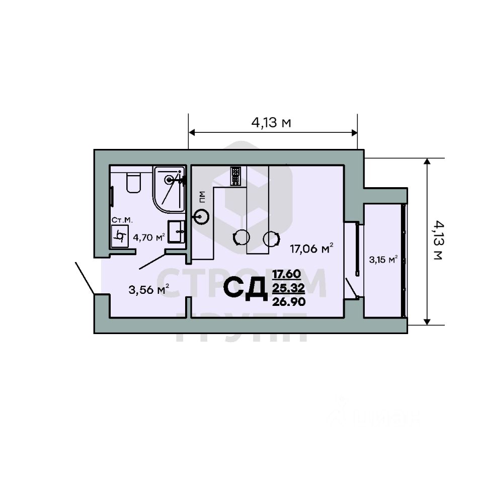 Главное и неоспоримое преимущество этой студии - просторная комната площадью 17 квадратных метров. Комната имеет квадратную форму, что является золотым сечением для создания любого дизайн-проекта, позволяет удобно расставить мебель и использовать жилое пространство максимально эргономично! По проекту комната разделена на зоны для приготовления пищи с установкой кухонного гарнитура и барной стойки и отдыха с установкой спального места. Согласно этой планировки проведена электроразводка. Большая ванная комната площадью 4,7 квадратных метра, в которой свободно размещается ванна, стиральная машина, унитаз и раковина также является достоинством этой квартиры. Просторный коридор площадью 3,5 квадратных метра предусматривает установку шкафа для хранения уличной одежды и обуви. Еще одним плюсом студии является большая, просторная лоджия площадью 3,15 квадратных метра, что дает возможность организовать дополнительное место для хранения. При сдаче дома лоджия будет остеклена! Доступны такие способы покупки, как наличные, ипотека от ведущих банков (в т.ч. все программы с субсидиями и господдержка), ипотека со снижением ставки за счёт застройщика, рассрочка до 2 лет напрямую от застройщика. В цену квартиры сразу входит ремонт в формате White Box с гарантией на все работы!