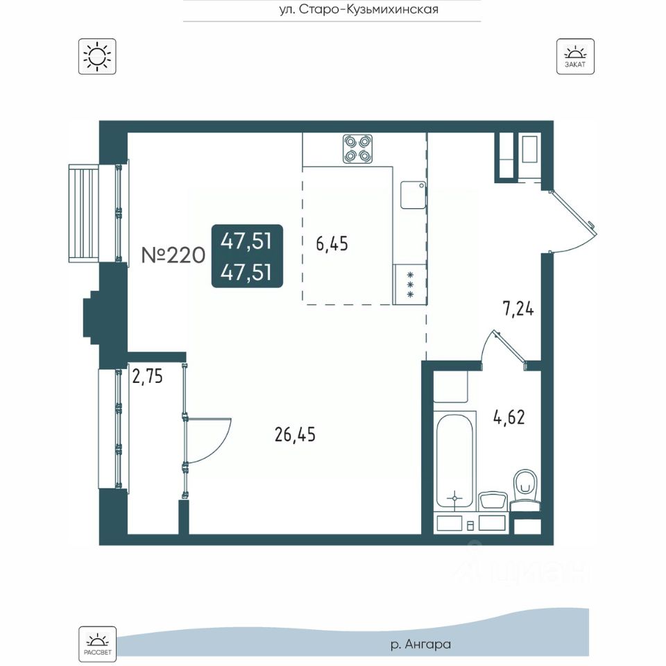 Общая площадь47,51 м2