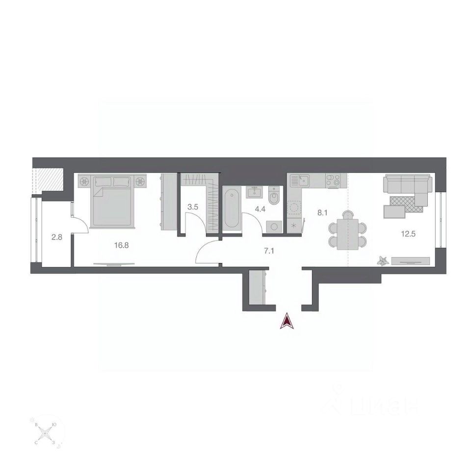 Жилая площадь29,3 м2