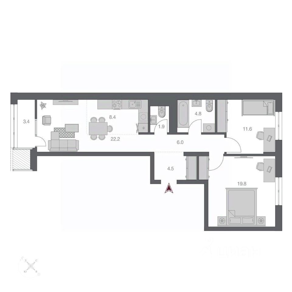 Жилая площадь45,2 м2