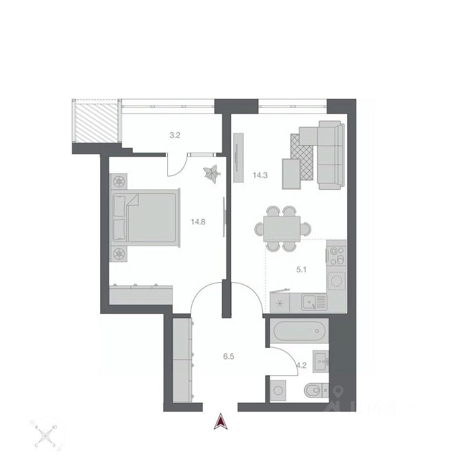 Жилая площадь29,1 м2