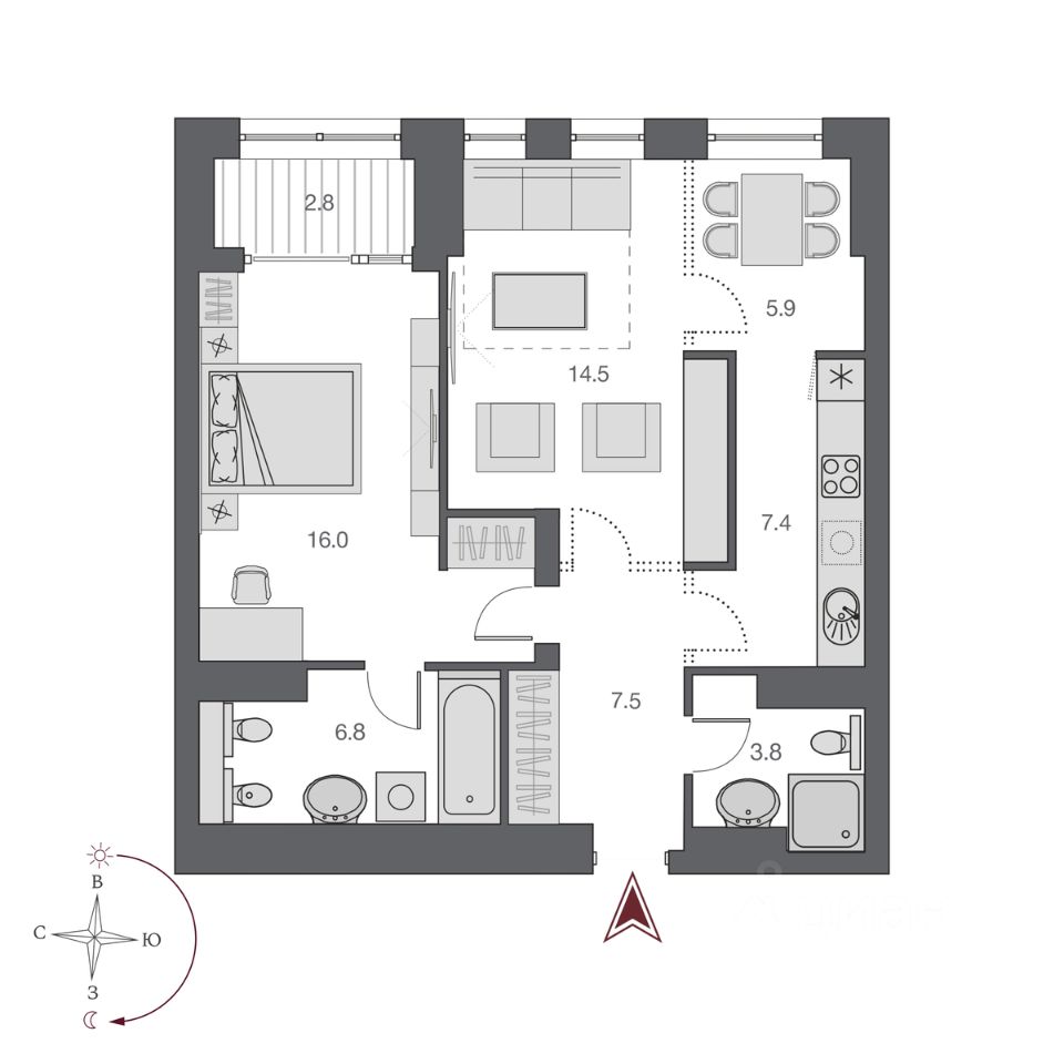 Общая площадь60,5 м2