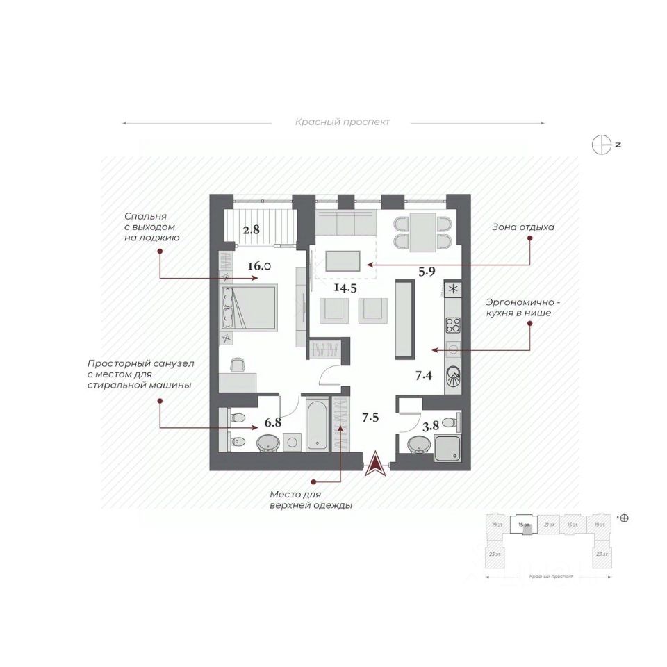 Двор Ландшафтный дизайн стилистически продолжает архитектурный замысел ар-деко: строгая закономерность, смелые линии, геометрические узоры, отсутствие ярких оттенков. Пространство двора-парка разделено на две части. Они отделены друг от друга колоннадой, по которой можно прогуливаться на высоте 10 метров и любоваться Красным проспектом. Зоны отдыха, игровые площадки, беседки соединены дорожками и создают один из узнаваемых узоров европейского стиля. Хвойные гиганты и фонтан добавляют особый шик.