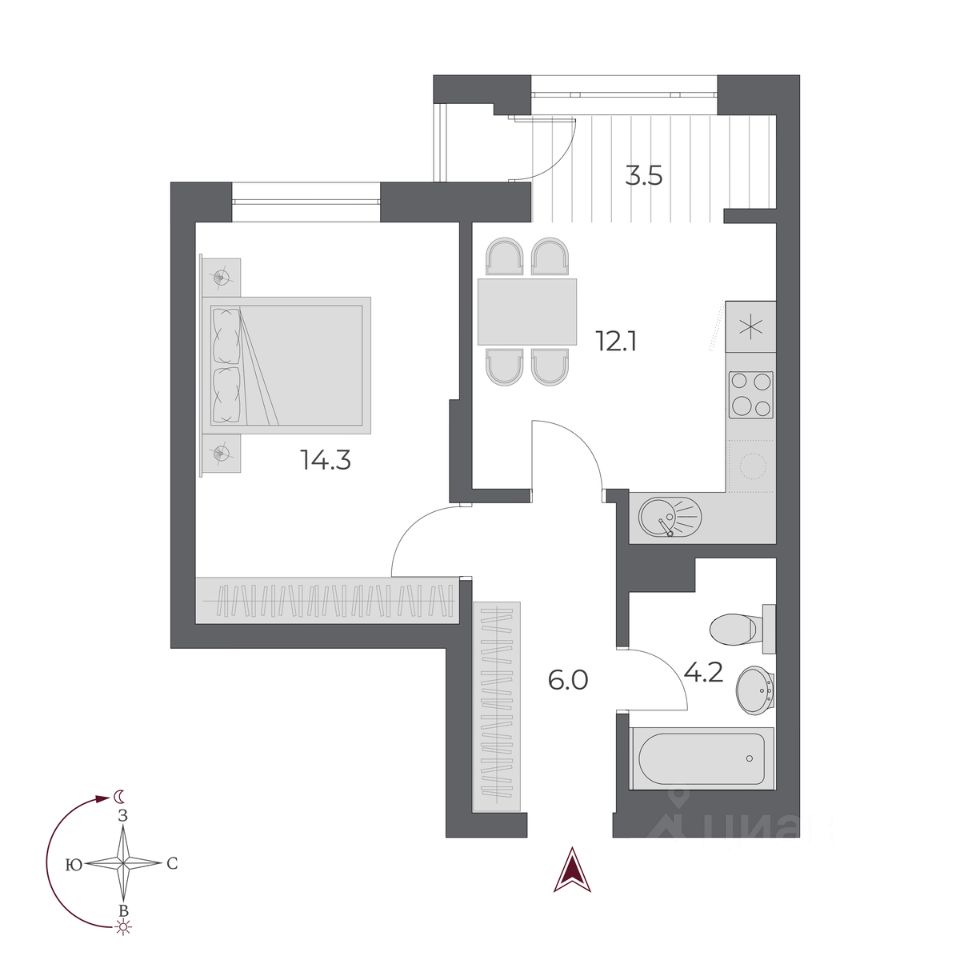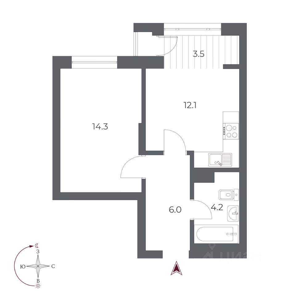 Жилая площадь14,3 м2