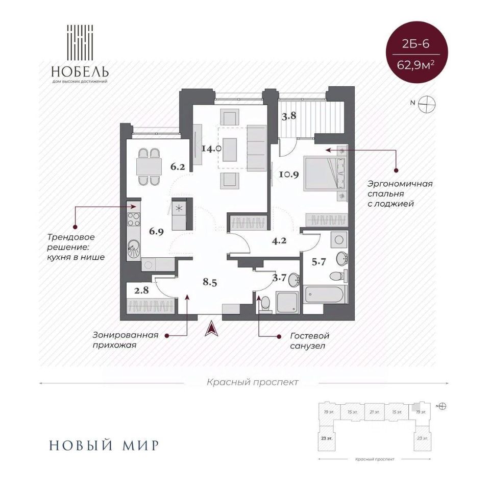 Дом ''Нобель'' в Новосибирске спроектирован компанией ''Новый мир'' совместно с международной командой архитекторов из Великобритании, Италии и Сербии. Уникальность проекта, в том, что при строительстве здания в центральной локации города удалось сохранить более 200 деревьев ценных хвойных пород на территории комплекса. При этом в продукте было сформировано более 50 вариантов функциональных планировочных решений. И все это в великолепной архитектурной форме в стиле ар-деко. Общая площадь территории 2 гектара!