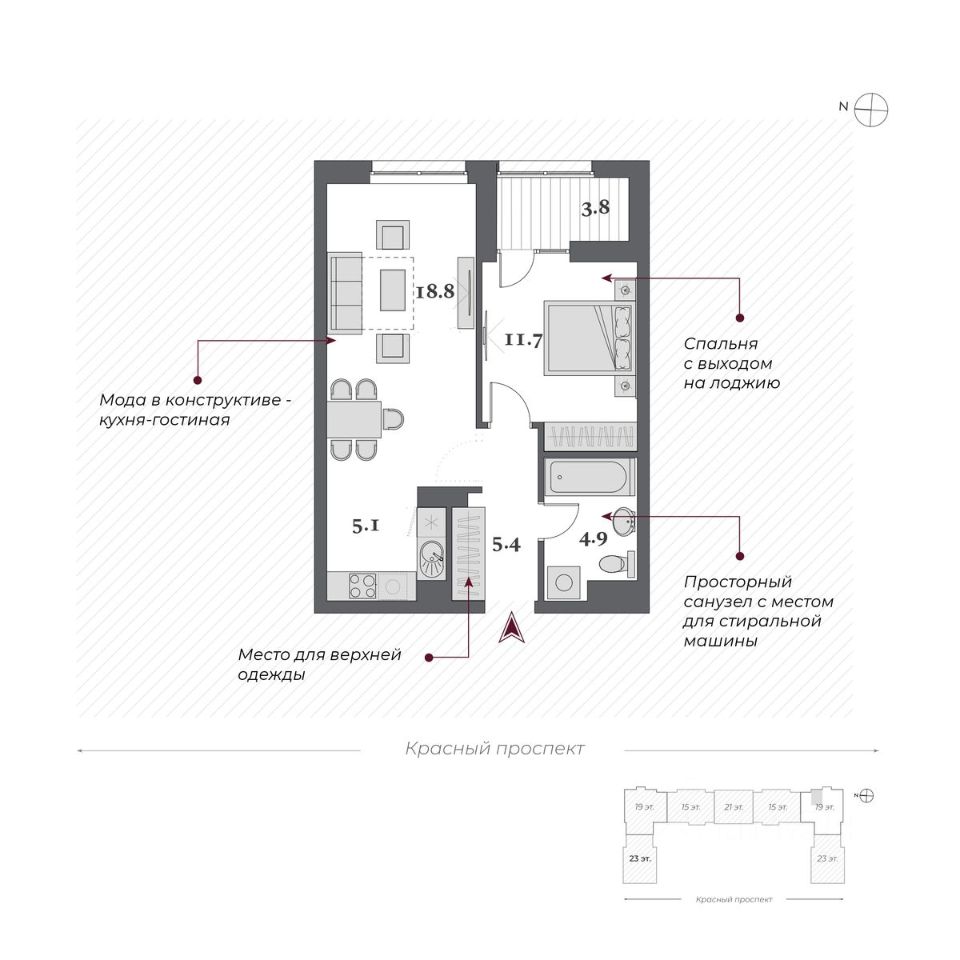 продам 2-к, Красный проспект, 22012 500 000 ₽