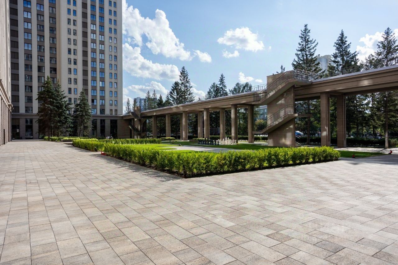 Двор Ландшафтный дизайн стилистически продолжает архитектурный замысел ар-деко: строгая закономерность, смелые линии, геометрические узоры, отсутствие ярких оттенков. Пространство двора-парка разделено на две части. Они отделены друг от друга колоннадой, по которой можно прогуливаться на высоте 10 метров и любоваться Красным проспектом. Зоны отдыха, игровые площадки, беседки соединены дорожками и создают один из узнаваемых узоров европейского стиля. Хвойные гиганты и фонтан добавляют особый шик.