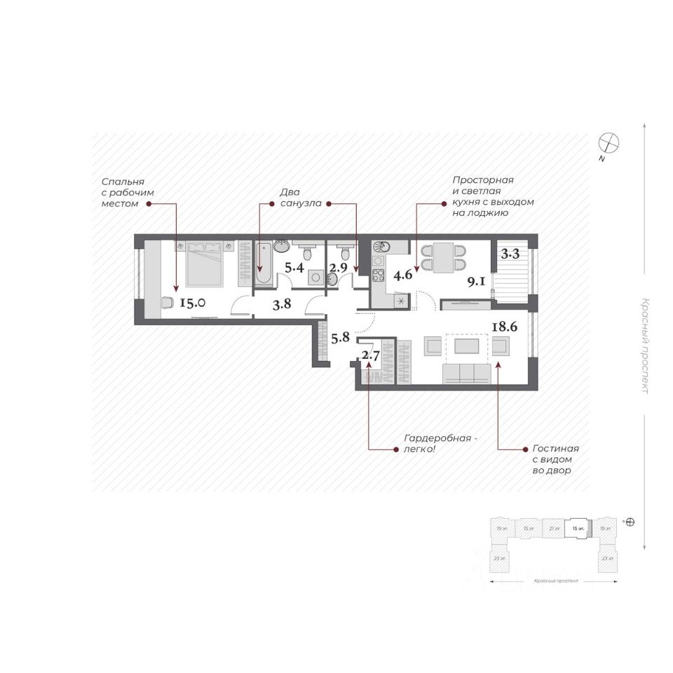 продам 2-к, Красный проспект, 22017 200 000 ₽