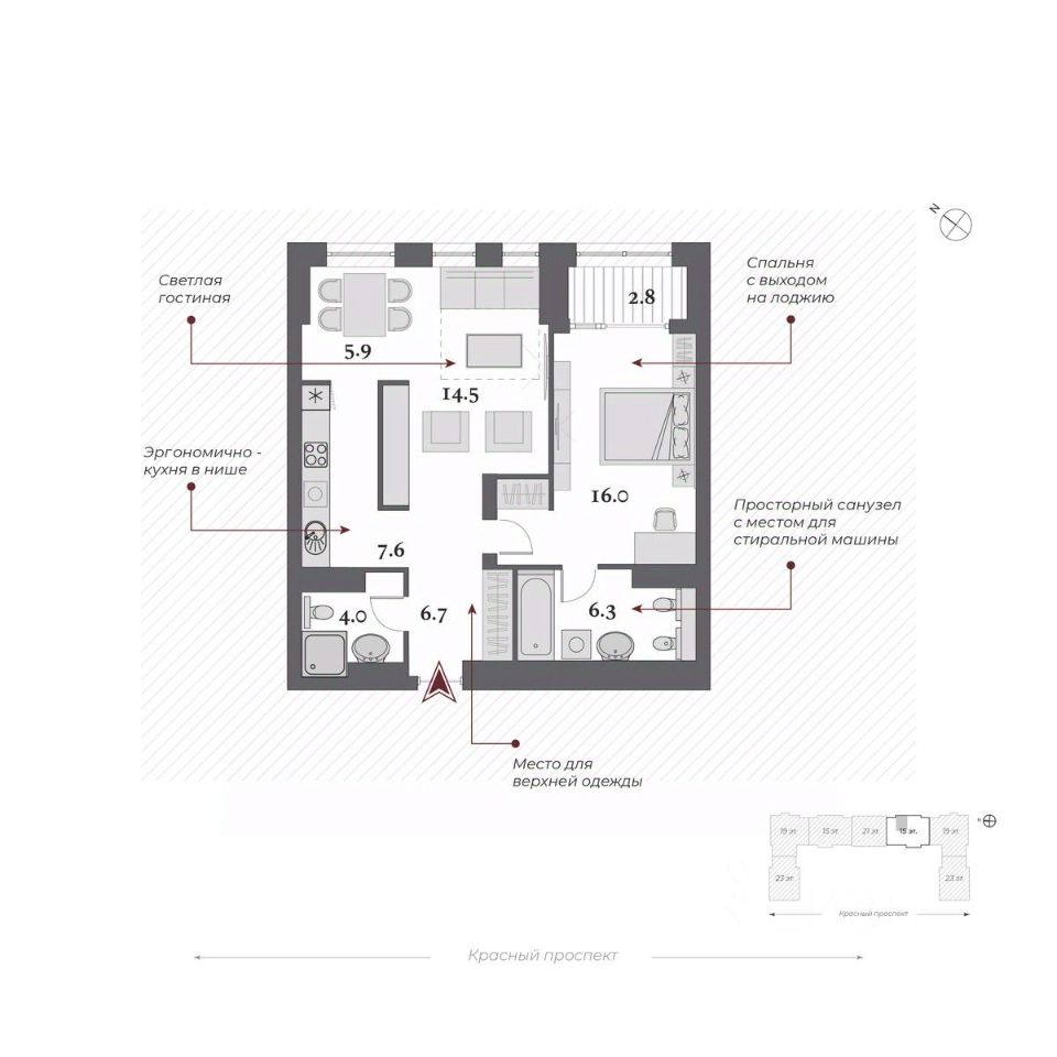 Двор Ландшафтный дизайн стилистически продолжает архитектурный замысел ар-деко: строгая закономерность, смелые линии, геометрические узоры, отсутствие ярких оттенков. Пространство двора-парка разделено на две части. Они отделены друг от друга колоннадой, по которой можно прогуливаться на высоте 10 метров и любоваться Красным проспектом. Зоны отдыха, игровые площадки, беседки соединены дорожками и создают один из узнаваемых узоров европейского стиля. Хвойные гиганты и фонтан добавляют особый шик.