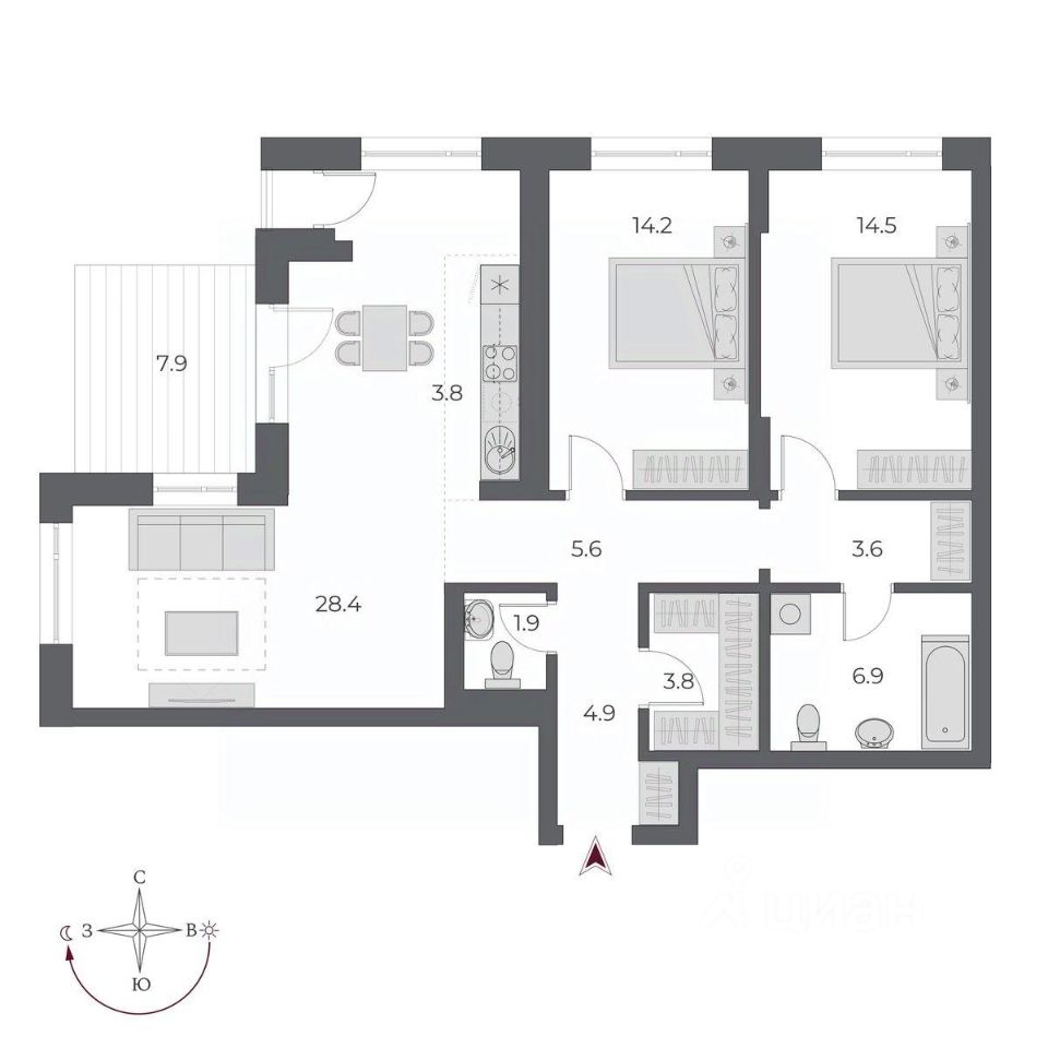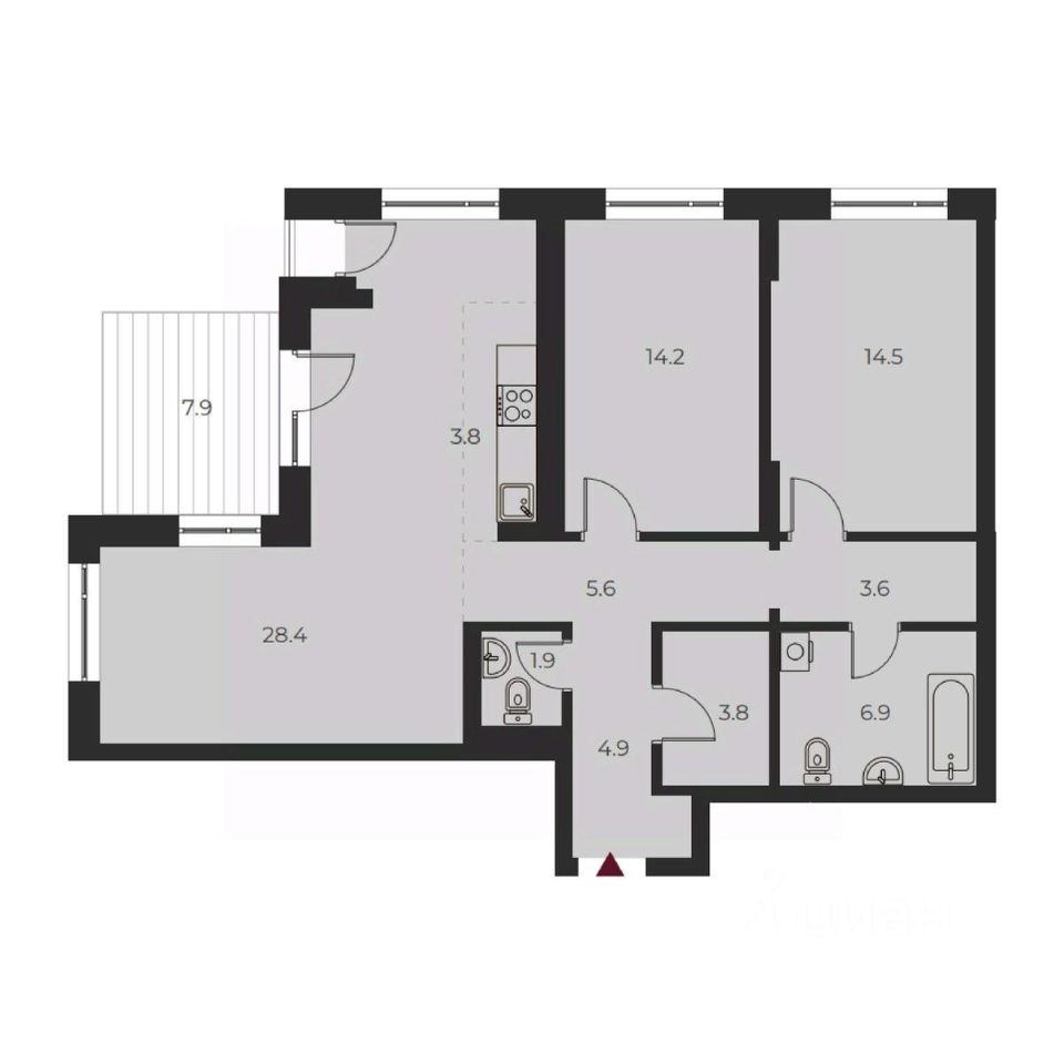 Жилая площадь57,1 м2