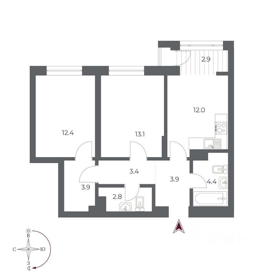 Общая площадь58,8 м2