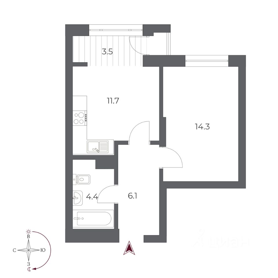 Жилая площадь14,3 м2