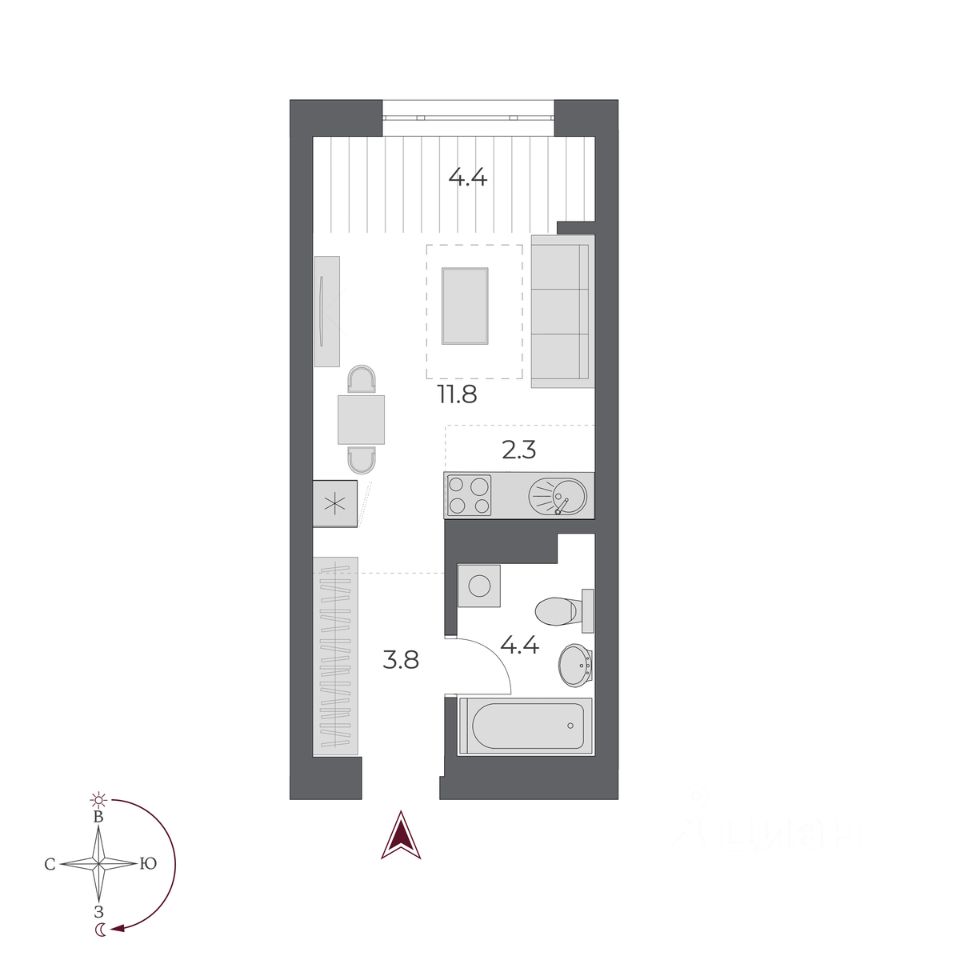 Жилая площадь11,8 м2