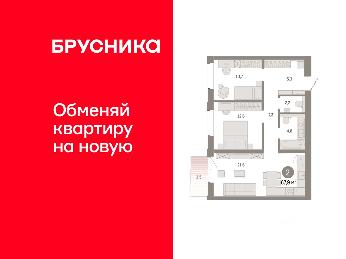2-комн. квартира с предчистовой отделкой в ЖК ''Город-на-озере'' на 10 этаже. Общая площадь: 67.94 кв.м., жилая: 23.3 кв.м., площадь просторной кухни-гостиной: 21.6 кв.м. Комнаты изолированные, все окна выходят на одну сторону. В квартире один балкон, один совмещенный и один раздельный санузел. Высота потолков 3.0 м.