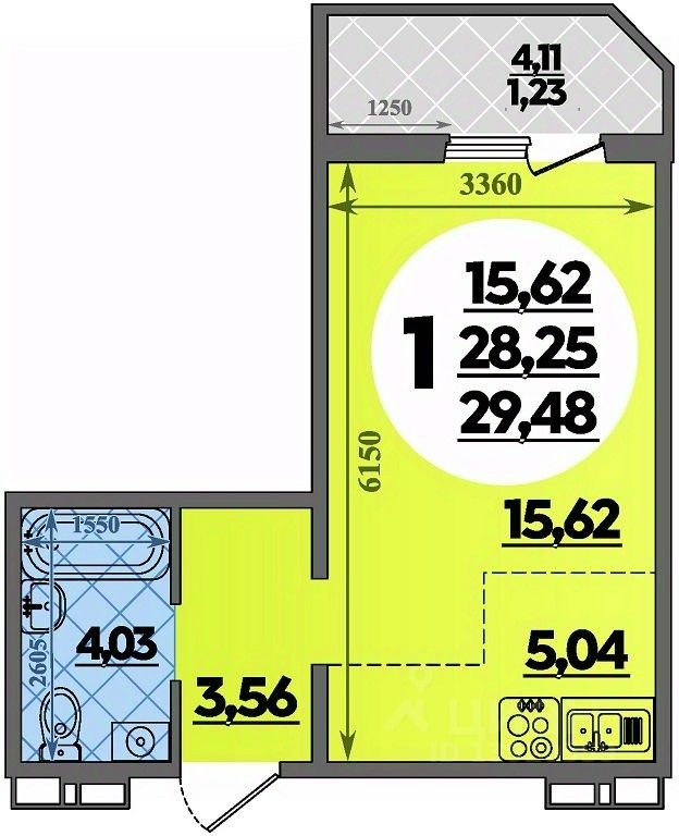 Продаётся студия в строящемся доме (Литер 2), срок сдачи: III-кв. 2027, общей площадью 29.48 кв.м., на 3 этаже.